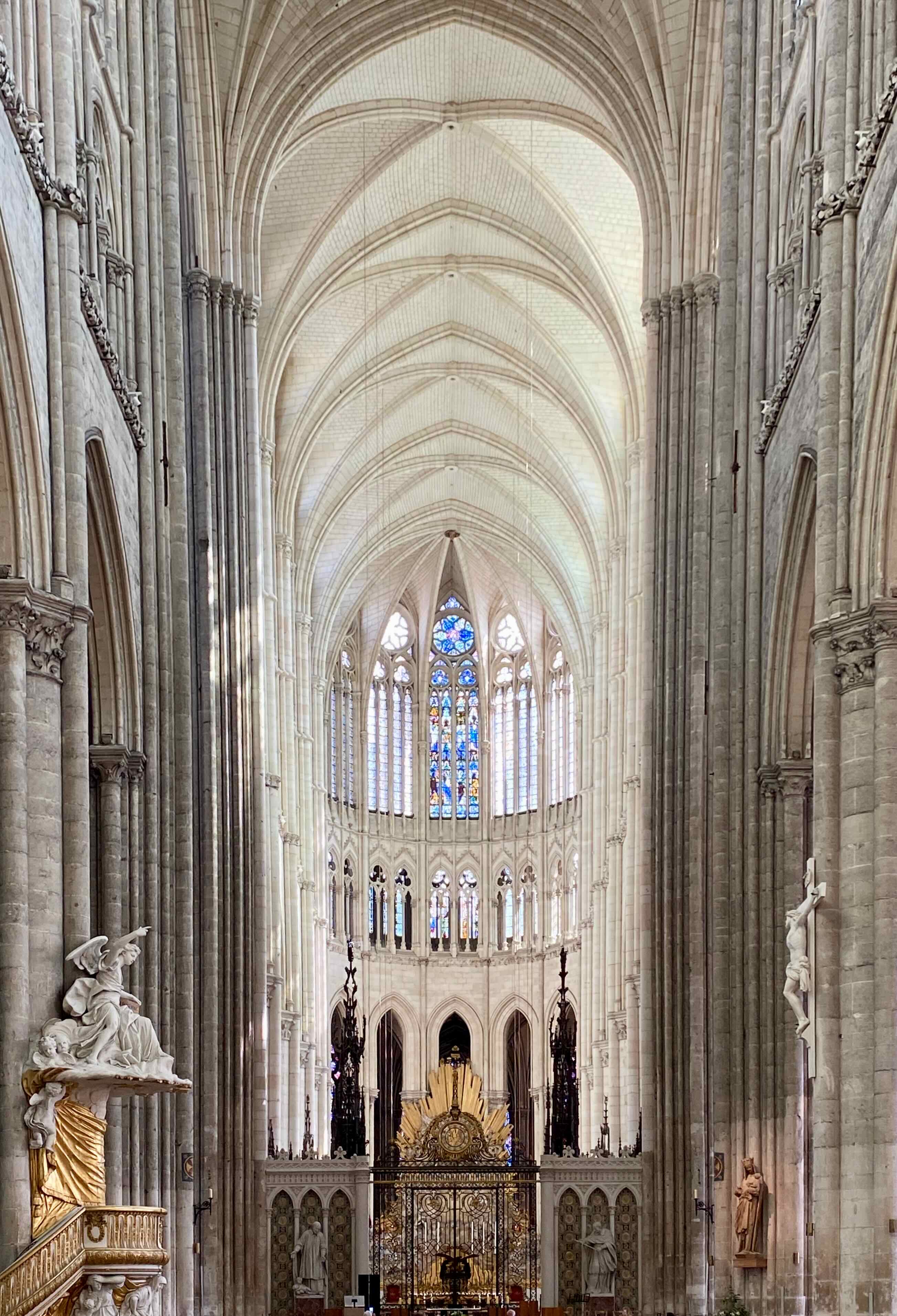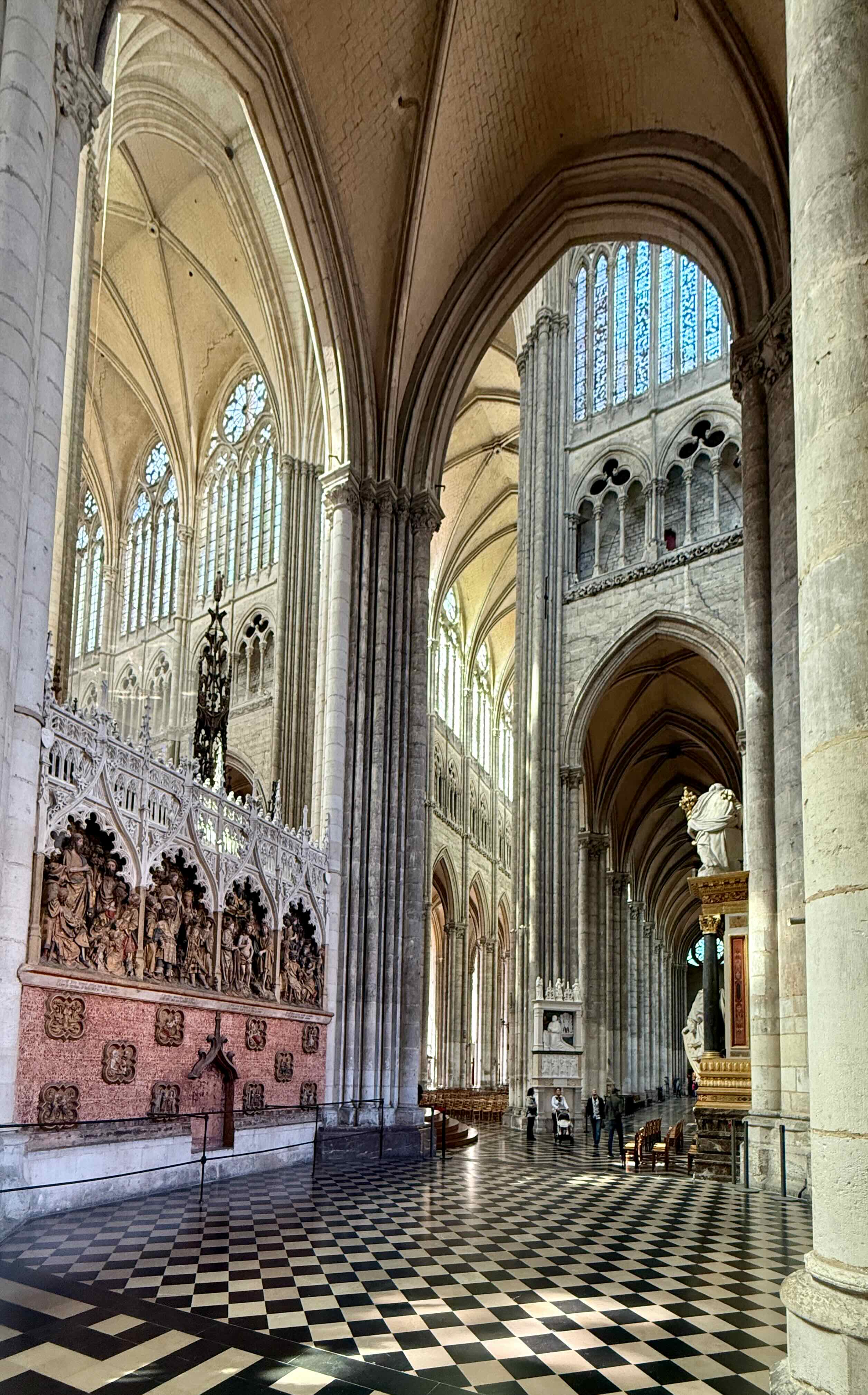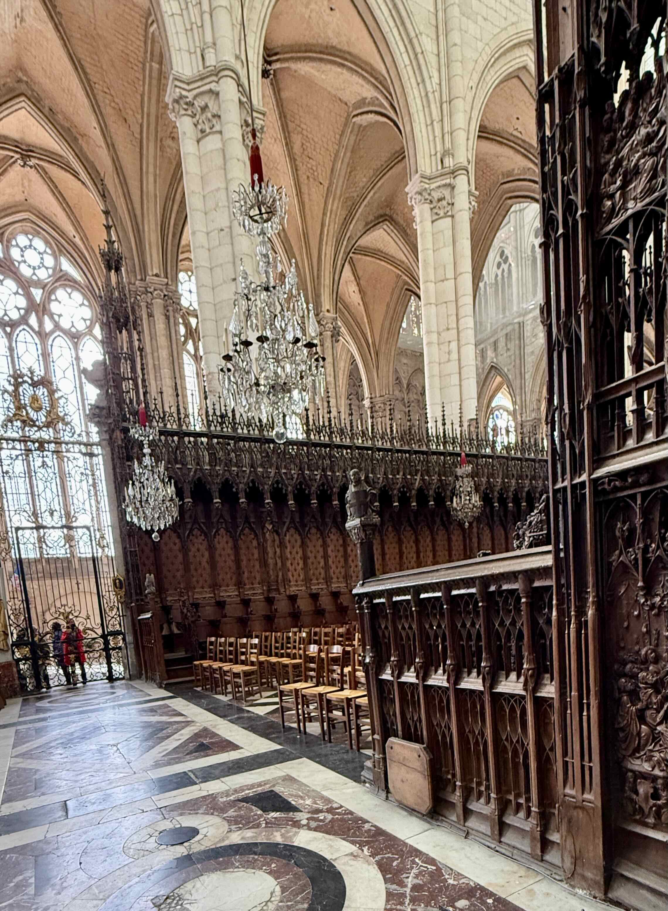 and many huge sculptures with multiple figures. We walk up these stairs for a view of the nave.