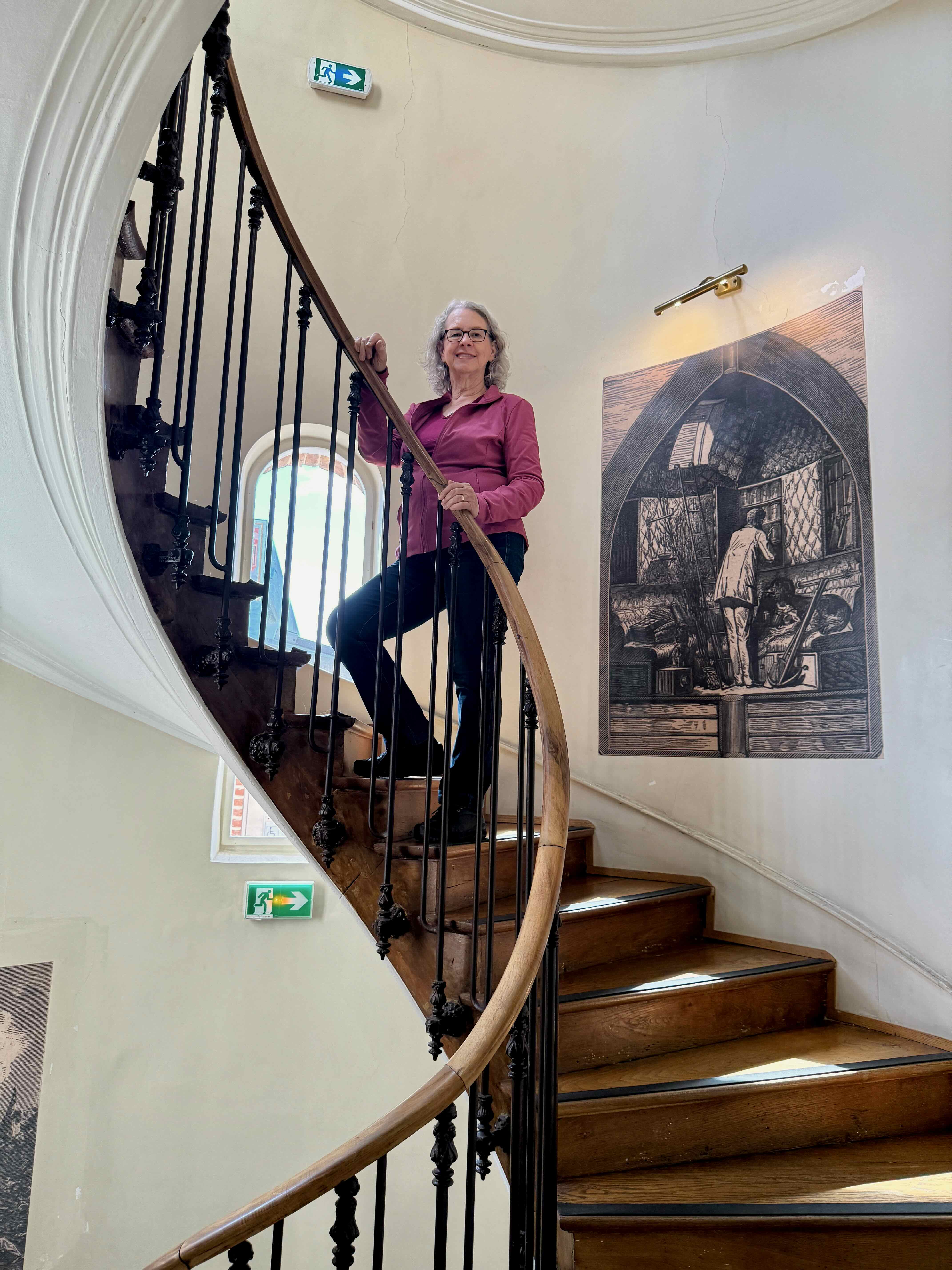 This wine barrel held 220,000 liters of wine. The stairs I am standing on lead to a platform above the barrel that was likely used as a dance floor!