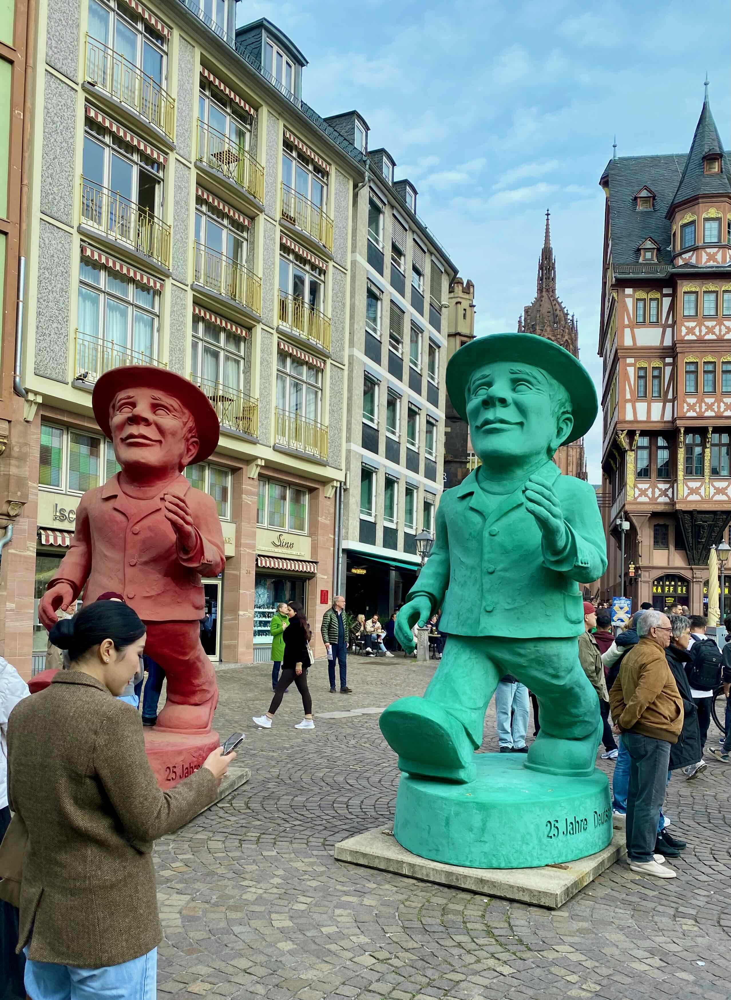 These two figures represent East and West Germany. Today was a holiday for the Reunification of Germany.