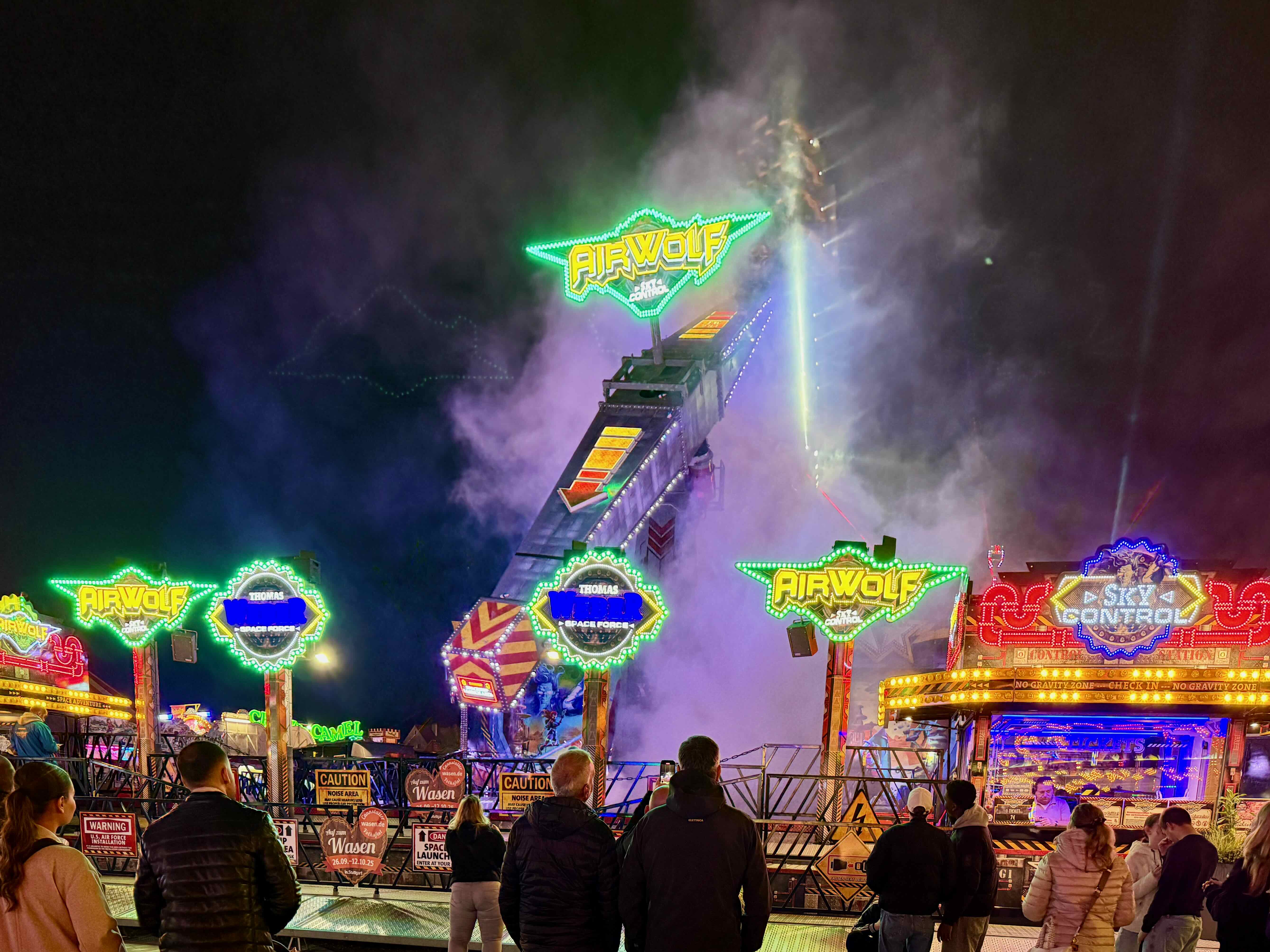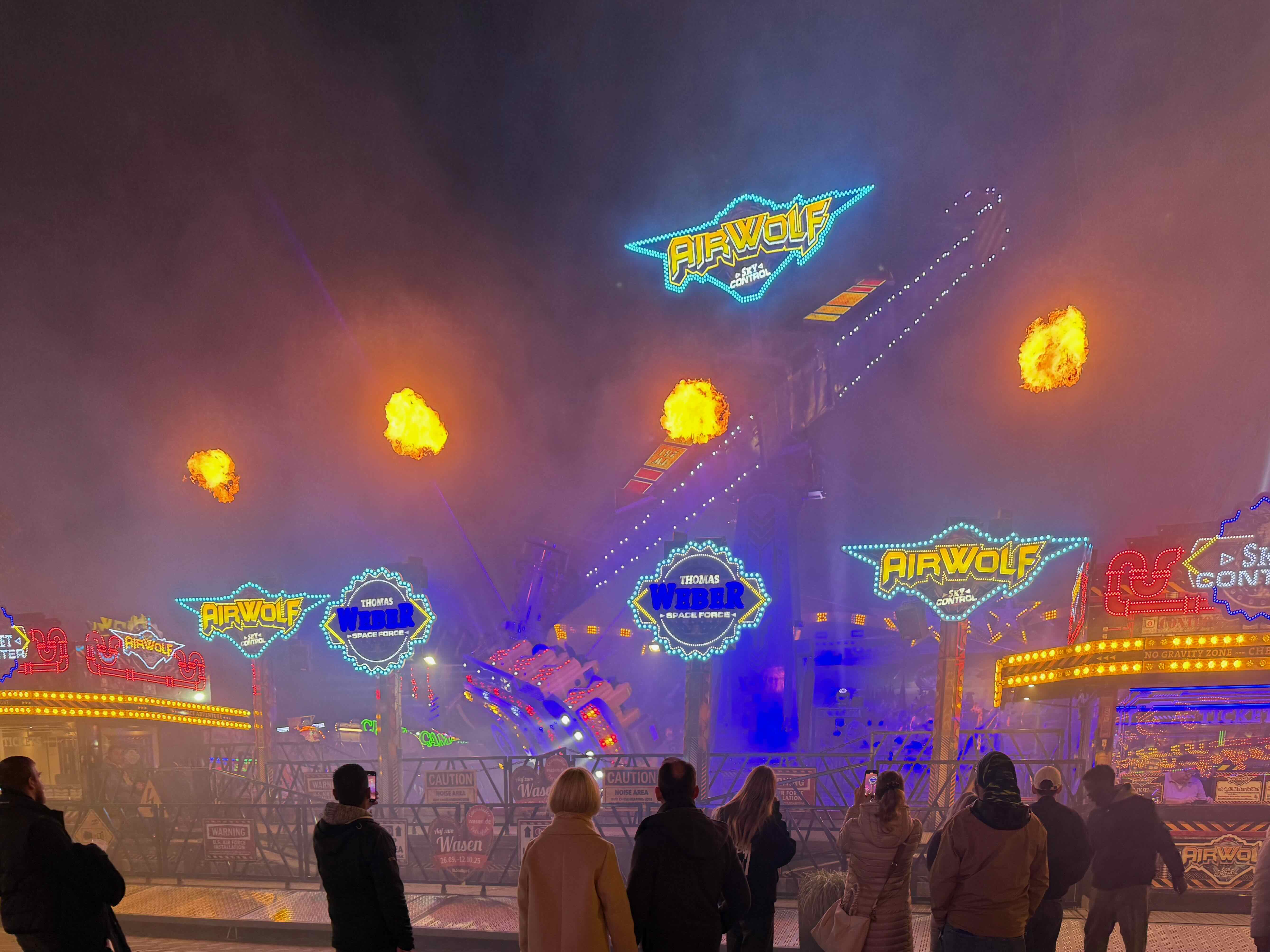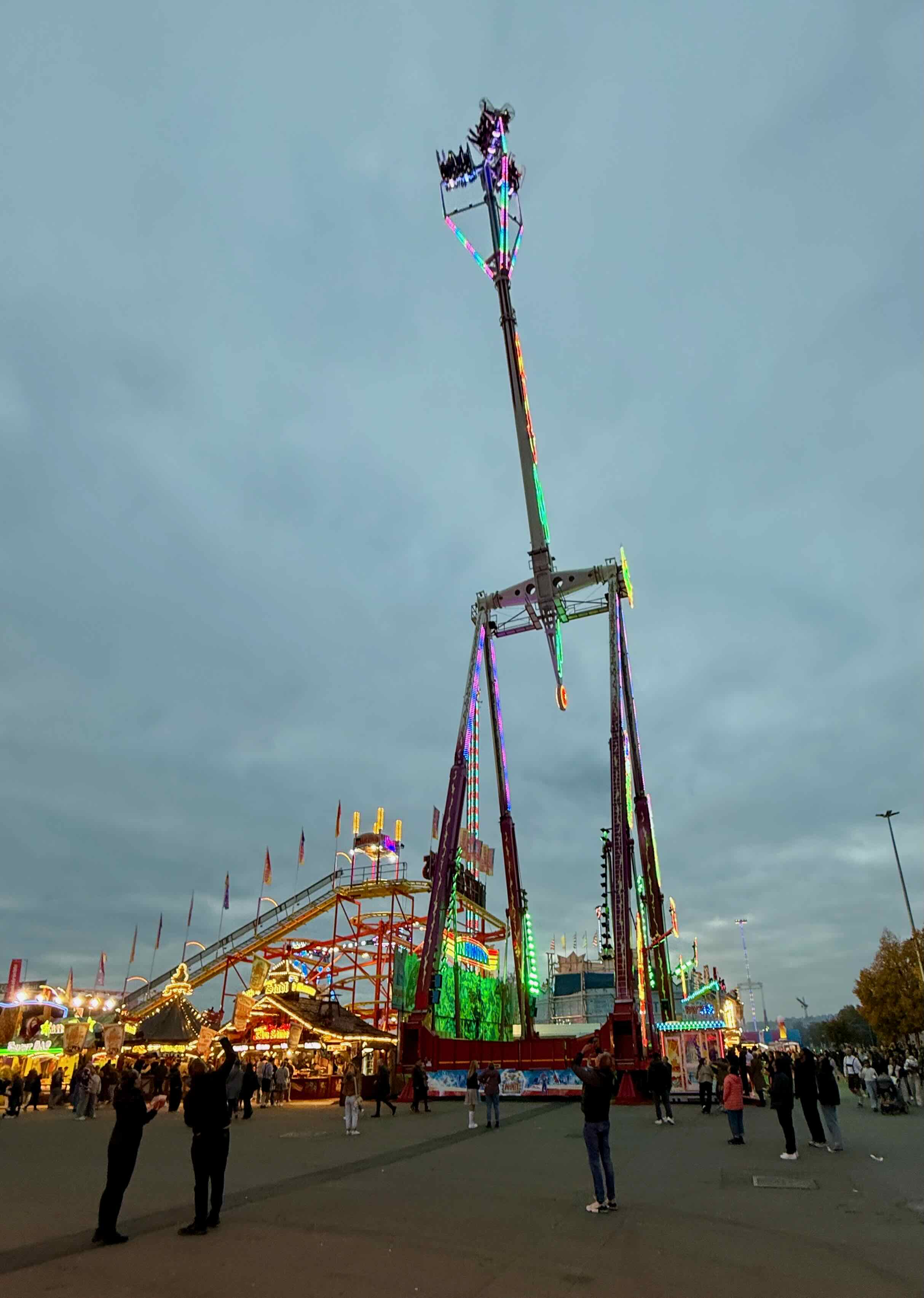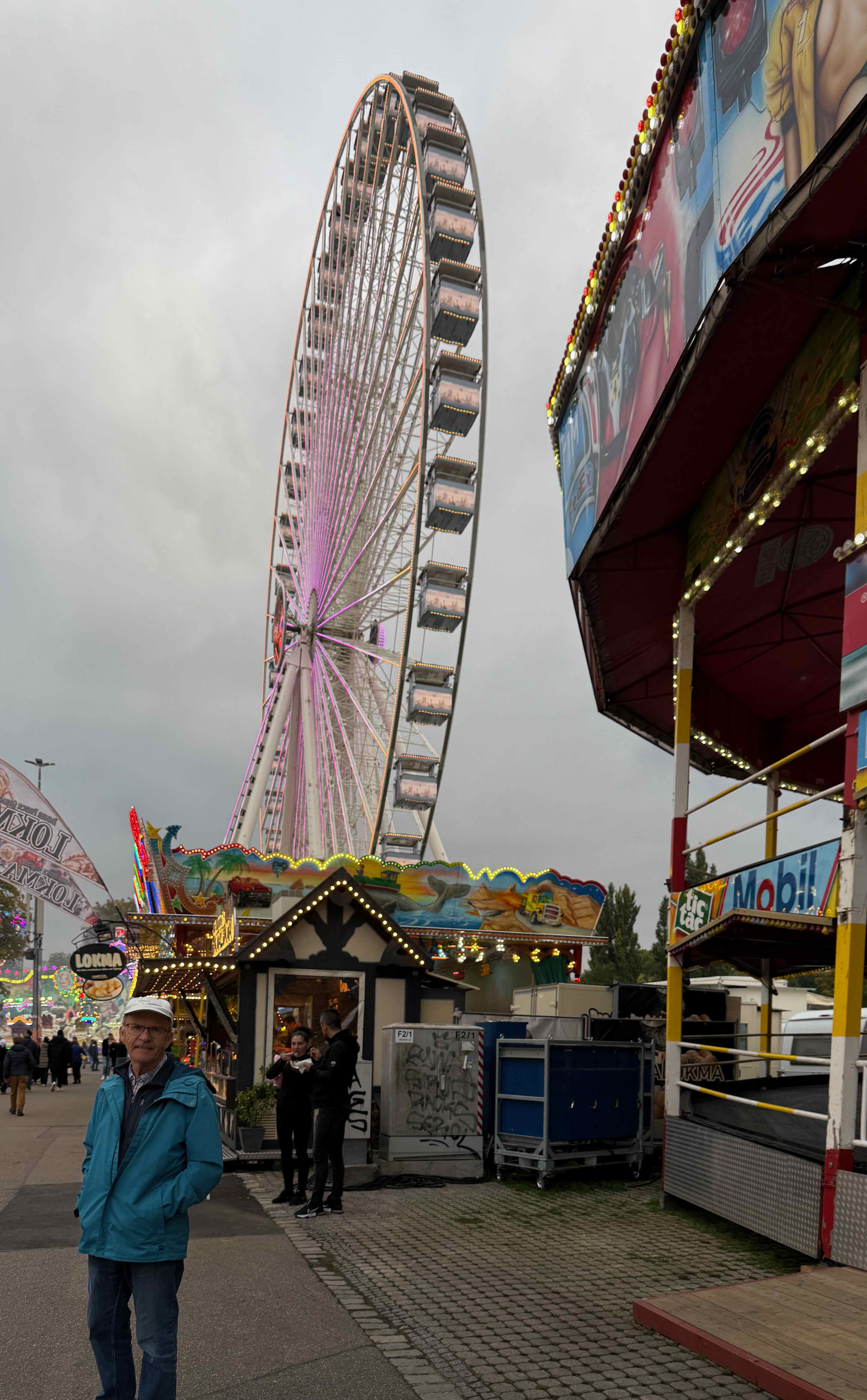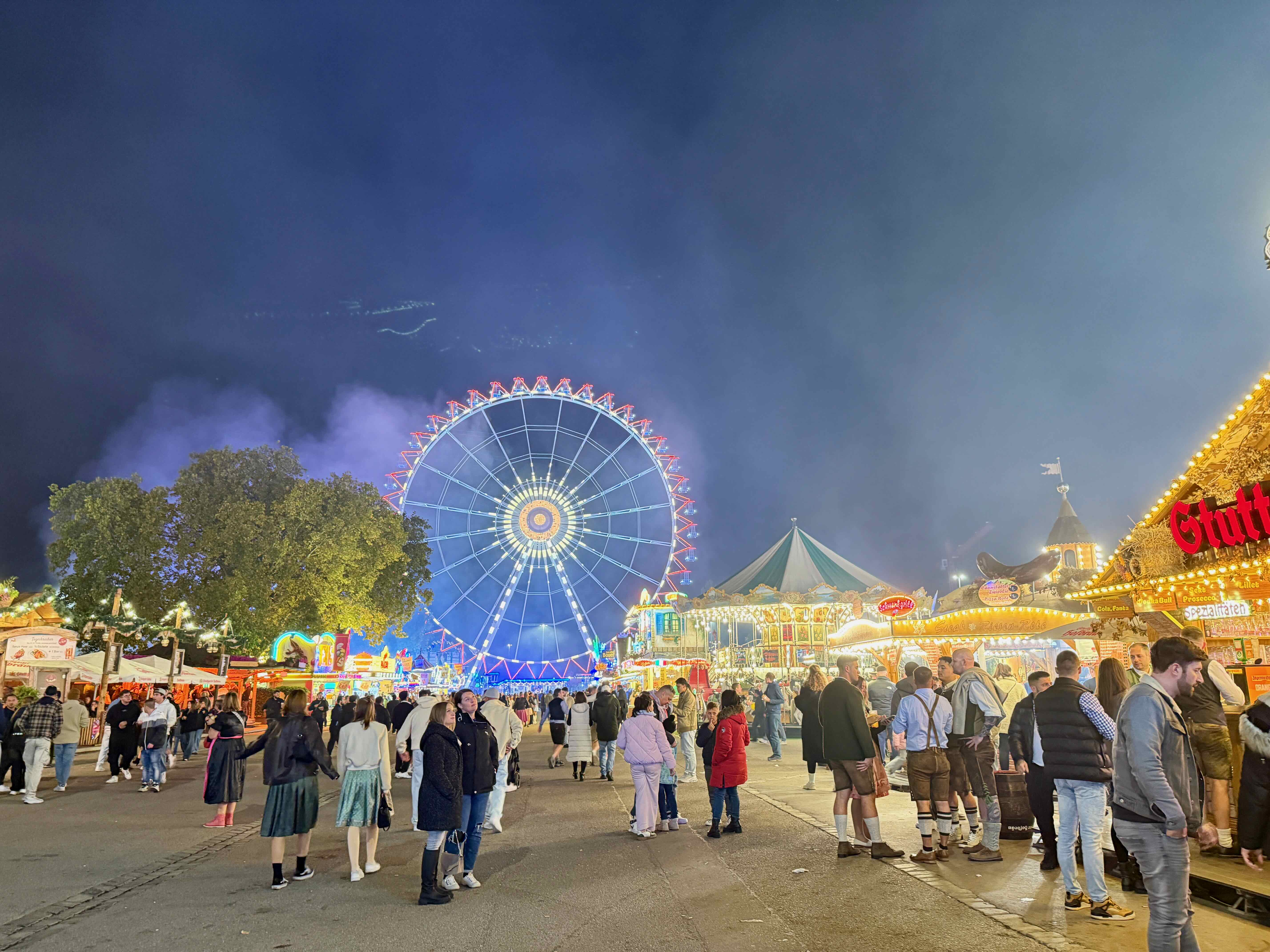 There are 5 kilometres of rides and attractions, children’s rides, stalls, market stands, many food and drink stands, including eight beer tents, countless beer gardens, snack bars, and candy stands. We have a great view of some of this from the top of the ferris wheel.