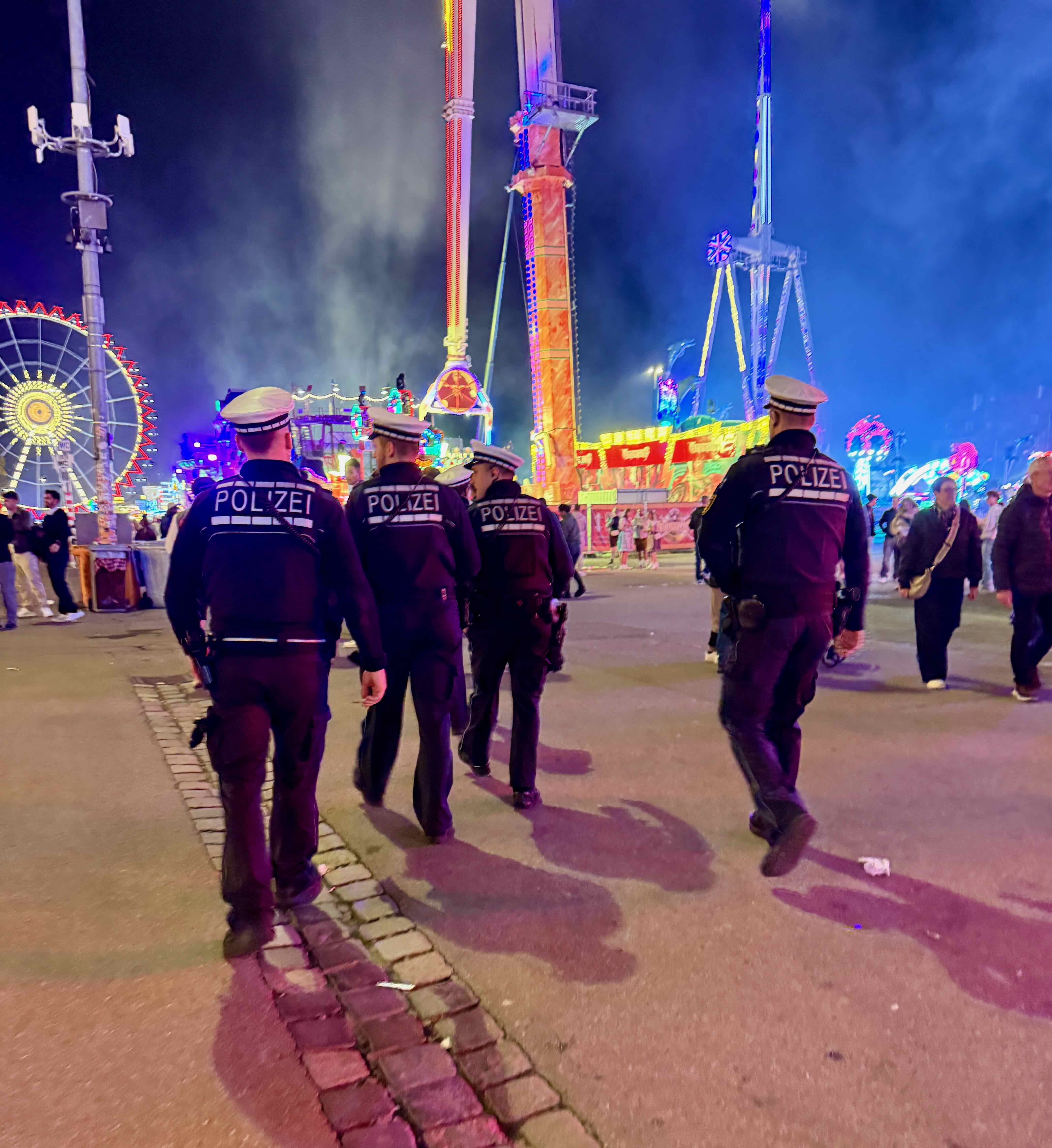 There is a definite Polizei presence. We saw several groups on patrol,  but we only saw one drunk person.  His buddy was half carrying him..his feet and legs just weren’t working at all!