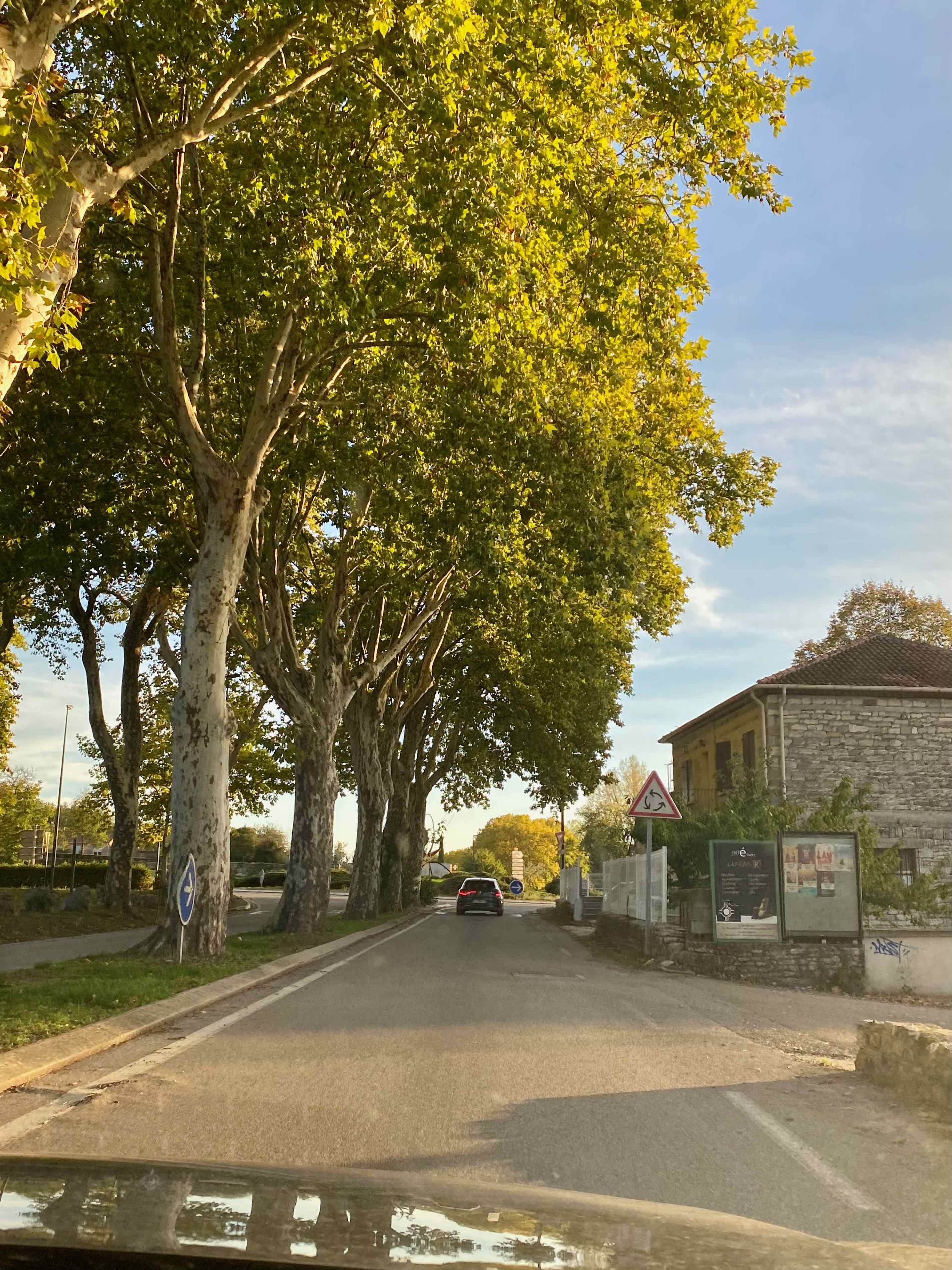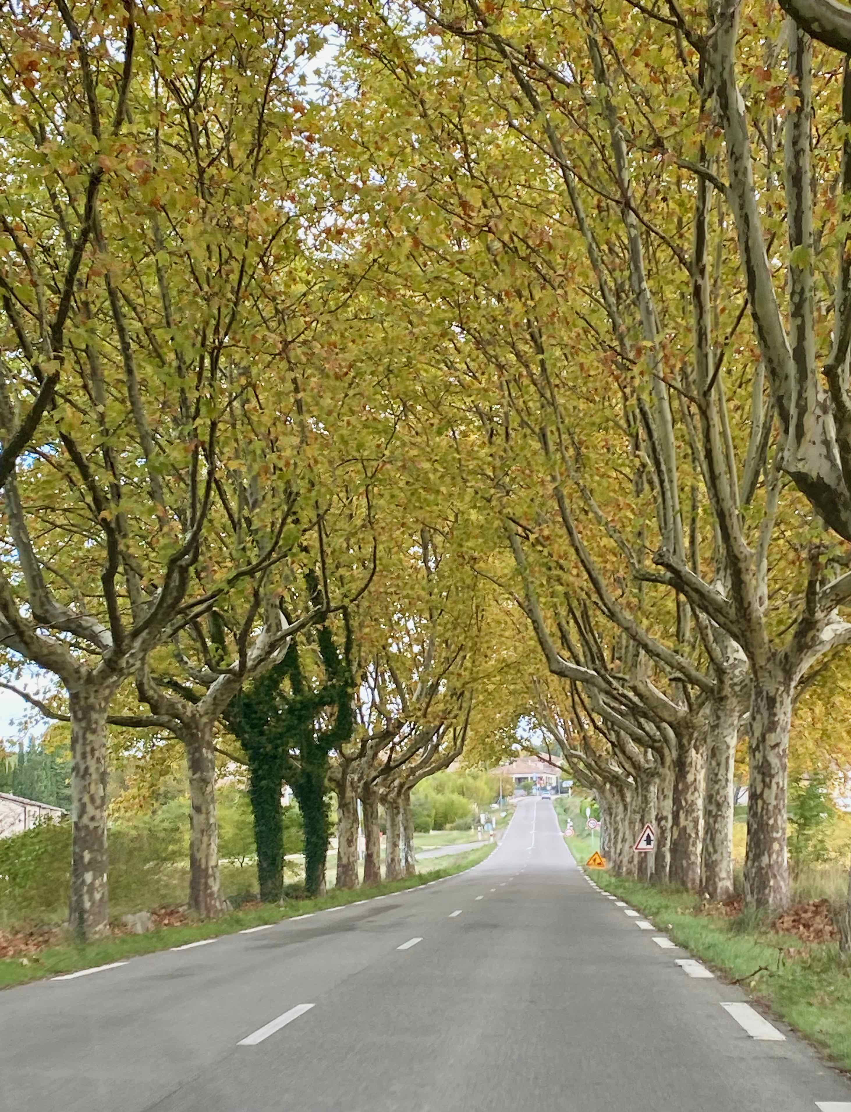More tree lined roads on the way home…the leaves look golden in the setting sun.