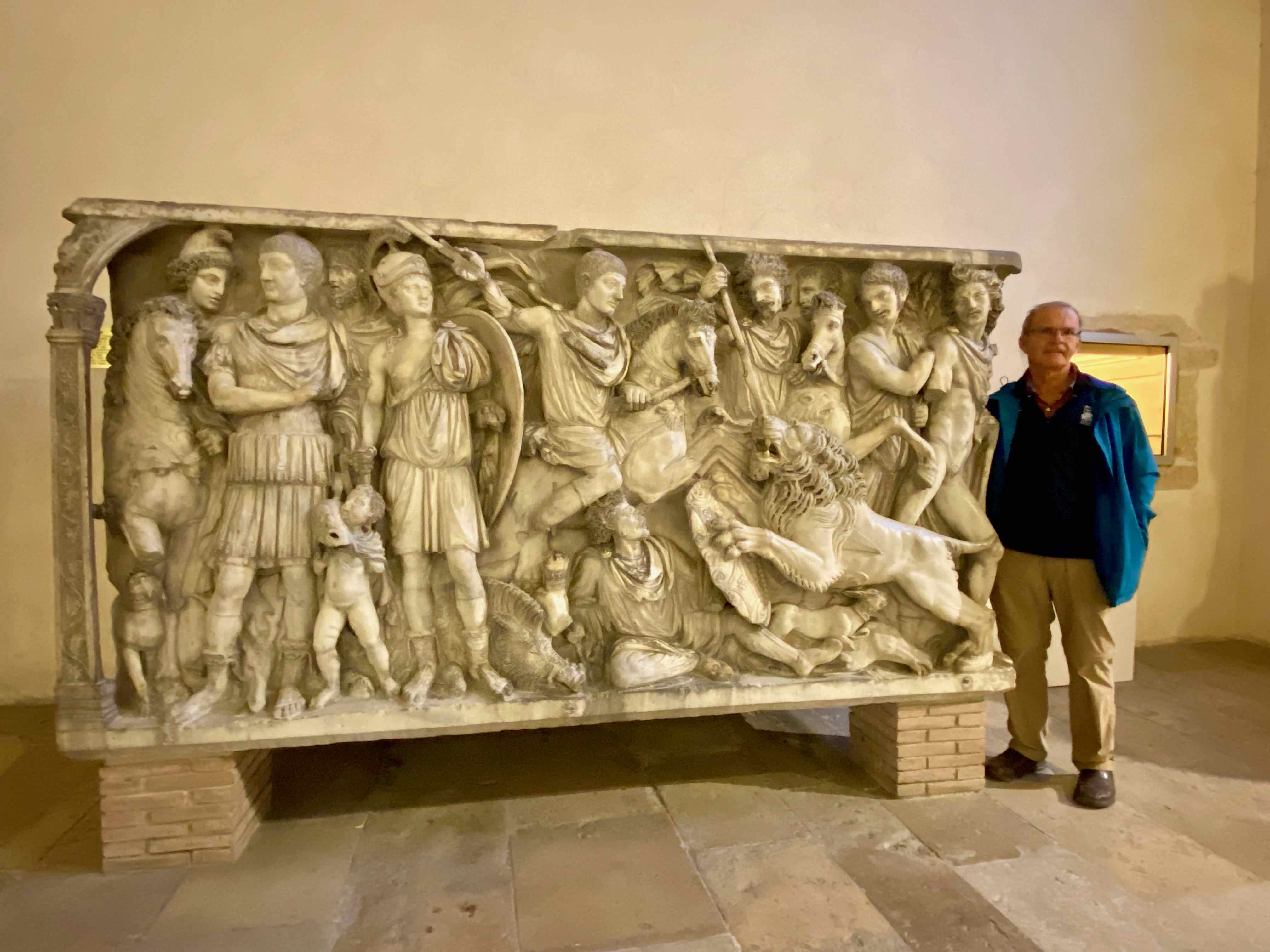 This foot of Emperor Constantine is a replica of one of the largest marble foots to have survived since antiquity. It was part of a 12 metre high seated statue of Constantine.