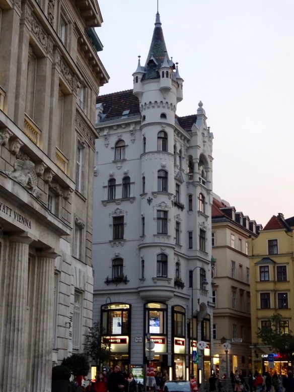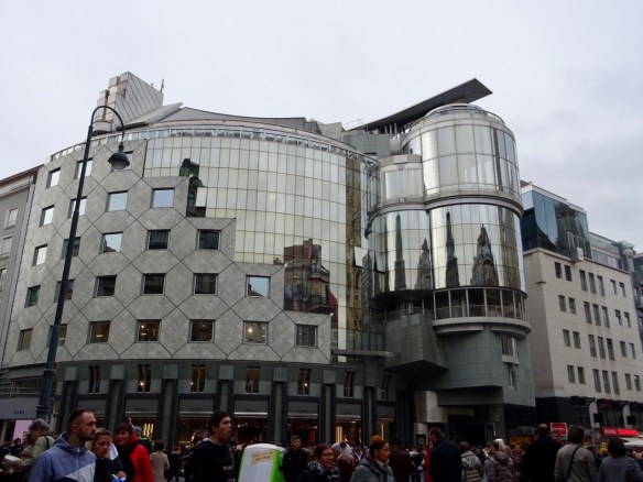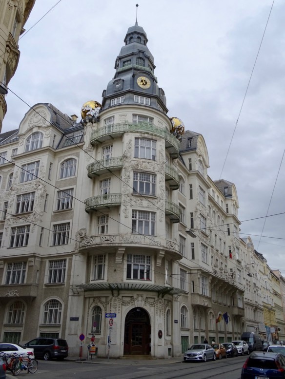 There are is many interesting buildings in Vienna. I don’t know what this building is but it has huge golden globes on the roof.
