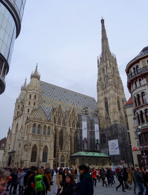 The St. Stephen’s Cathedral is huge, and ornately decorated, outside…