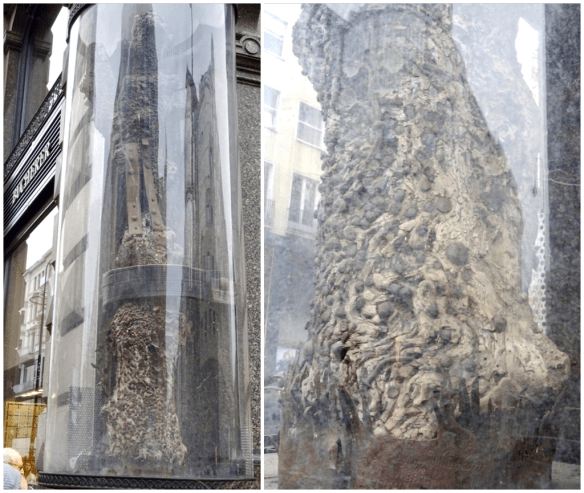 The Stock im Eisen is part of a tree that has hundreds of iron nails pounded into it and dates from 1440. No one is sure why the nails were pounded in but it is thought that is was for good luck. It is located on the corner of a building and is protected behind plexiglass.