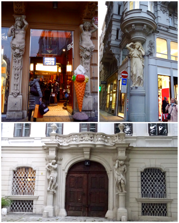 Back outside, there are interesting details everywhere I look, like these sculptures holding up balconies.