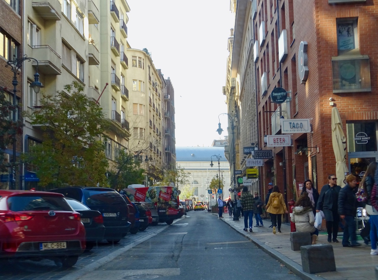 There are lots of lights on the street outside the Opera House where we catch the metro home.
