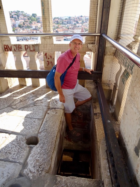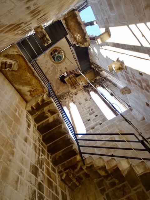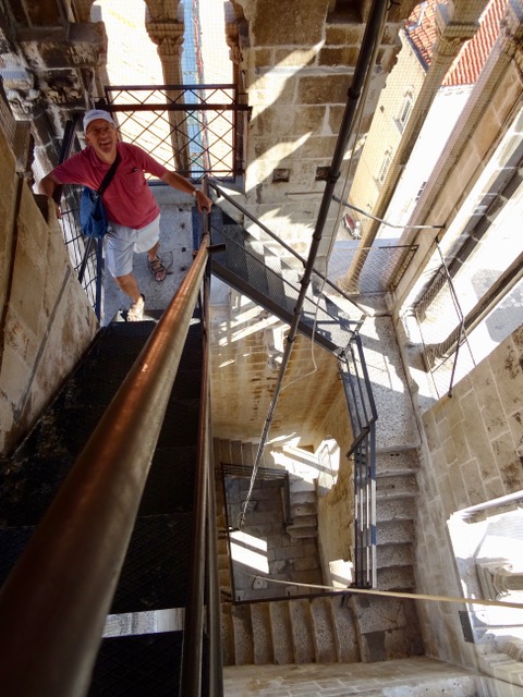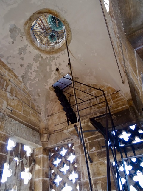 We take a break and climb 231 steps to reach the top of the bell tower. half way the steps change from a concrete spiral staircase to these metal steps, which are a bit scarier to climb.