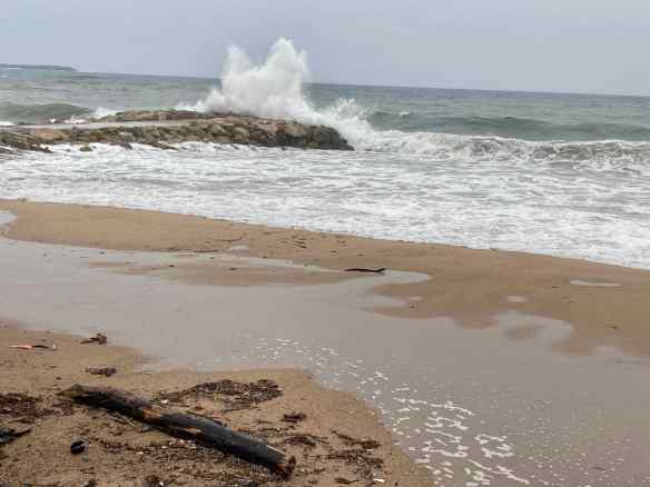 Our first view of the Mediterranean Sea this trip.  No sunbathers on the beach today.