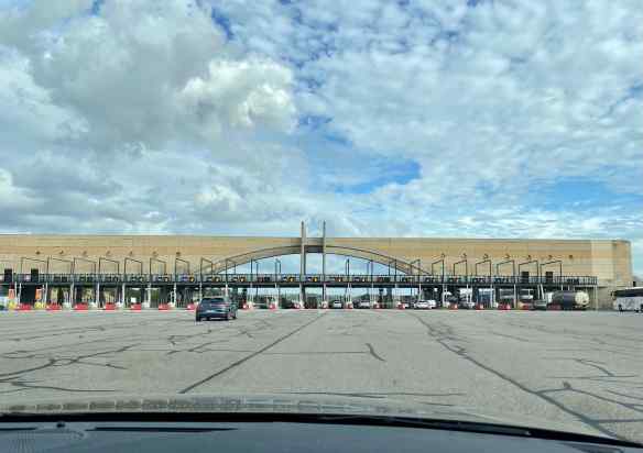 Back on the highway we pass through yet another toll booth.  This one is pretty big.  The crazy thing is that on the other side there are no lanes.  Once you pay your toll the gate goes up and all the cars need to merge back onto the highway.  It is kind of crazy.