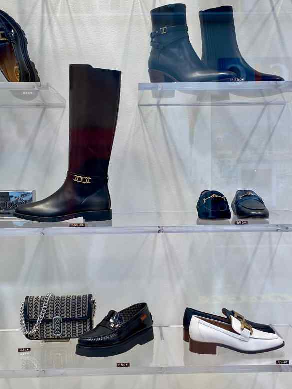 Boats aren’t the only expensive item in Cannes.  The little black boots are 1100 € and the tall boots are 1300 € !