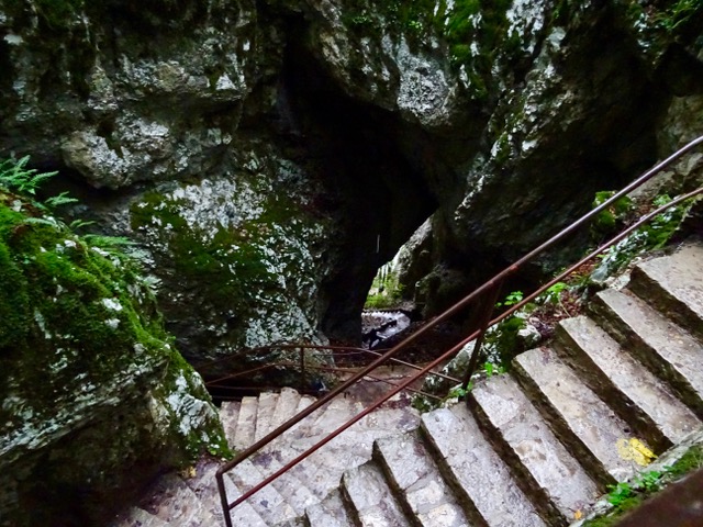 At the end of the tunnel we climbed this long stairway with 120 steps to the exit. There are about 350 stairs to climb on the whole tour along with many long downward sloping walkways. We enjoyed our tour of this cave. It is strange to think that we were so far underground and neither of us felt at all claustrophobic.