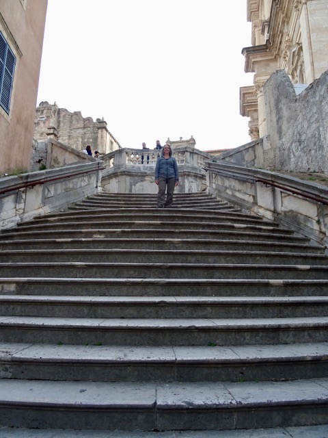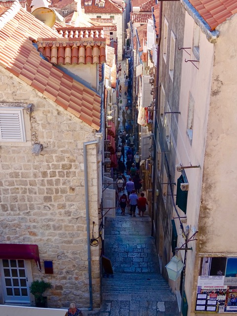 Of course there are more steps to climb!There is a great view of  Minčet Tower which is the House of the Undying where Daenerys goes to look for her dragons. We were there yesterday on our walk on the walls.We also saw where Cersei did her Walk Of Shame, which actually takes place in three different places.This is where the crowd gathers to harass her on the walk.