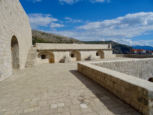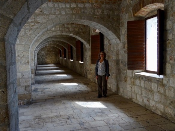 On the way to Lovrijenac Tower we stop at this pier which is another Game of Thrones filming site. We climb up to Lovrijenac Tower which was the Red Keep on the Game of Thrones. Check the link out for photos of these sites in the show.Cersie walks down this hall…Joffrey stands here on the middle deck for his name day.  A guide was telling a group this as I stood here looking down. He said I needed to pretend I was Joffrey, so I waved to my adoring crowd!This corridor is used for several scenes, including the one where Sansa is attacked and the Hound saves her.The scenes shot here are in the link above.