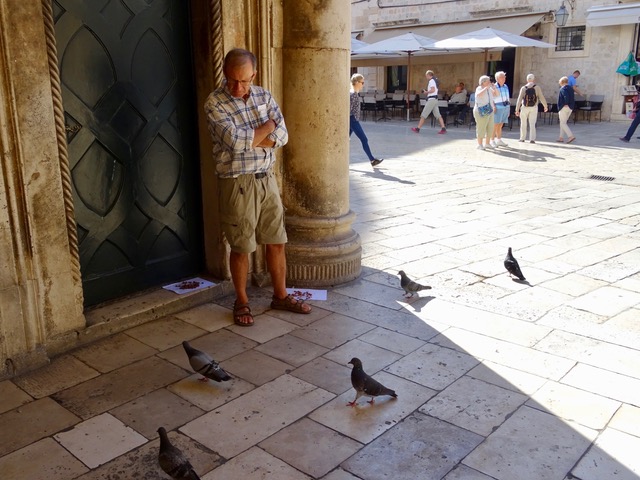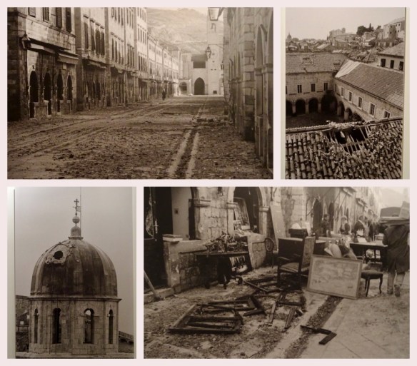 Bob is in a standoff with pigeons who are trying to get some cat food behind him. He isn’t a fan of pigeons but he had fun with them!In the Rector’s Palace there is an exhibit of photographs from the war in 1991 that caused a lot of damage in Dubrovnik