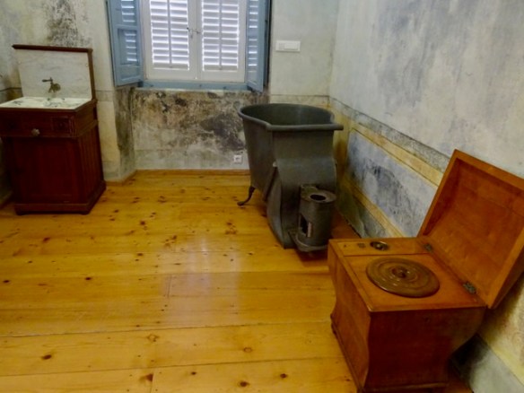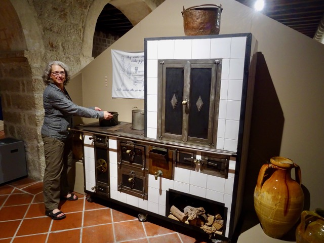 After a leisurely morning we return to Old Town Dubrovnik for some more exploring. First we visit Marin Držiç House which is a memorial museum for one of Croatia’s greatest playwrights. I decide to have a little one on one conversation with this interesting fellow.The Ethnographic Museum is next, and it is located in a very interesting building that was the town granary in the 16th Century. Reserves of grain were kept in 15 very large wells carved in stone. The dark grates in the floor of the main floor open into these wells.These little stone trap doors on the second floor were used to drop the grain down into the wells below.There are many exhibits of traditional handmade textiles, clothing, household items and traditional handicrafts. I would love to have a stove like this!