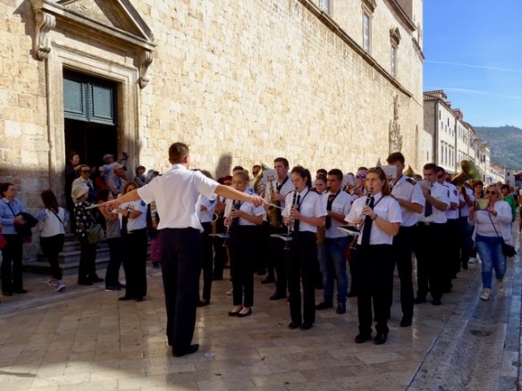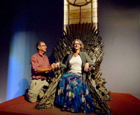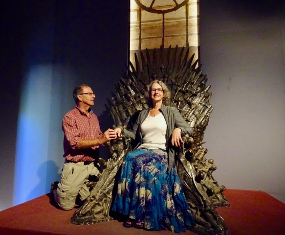 When we arrived in the old town of Dubrovnik we were greeted by a marching band.First stop is Fort Revelin, a fortress that was built in 1462 outside the city walls to help protect Dubrovnik. The ground floor is the Dubrovnik Archaeological Museum which isn’t very big, just a  few smallish rooms, so it doesn’t take us long to see everything.On our way to the port I need to take a few more photos of Dubrovnik’s fantastic old buildings. There is just so much to see here.Here is a different view of the old town as we travel on the ferry to Lokrum Island, and yes, the water is really that blue!First stop on the island is the Benedictine Monastery complex, from the 15th Century where there is an authentic replica of the Iron Throne which was donated by the Game of Thrones. This photo makes me think of a quote on a card a friend gave me years ago. “Inside every woman is a queen, speak to the queen and she will answer!” There is a small museum here with some interesting videos about the filming of the series and a map of all the Croatian filming locations.
