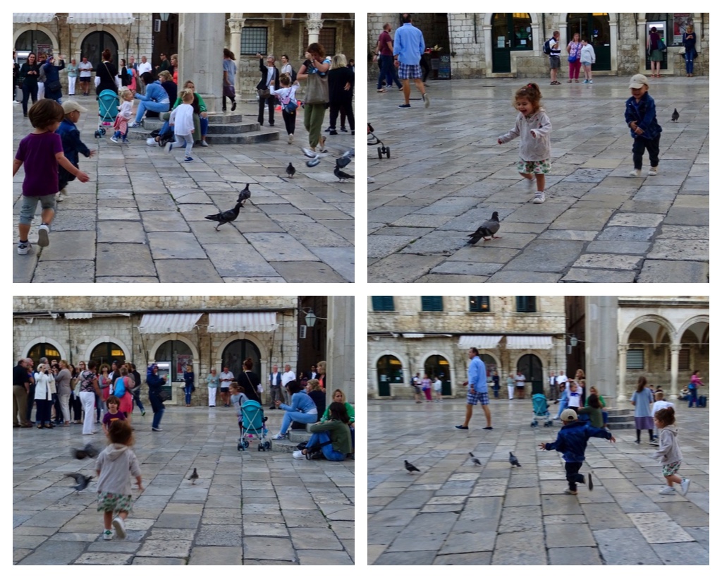 We make our way back through the old town, stopping for tea and some more people watching before catching our bus home. There were street performers and…happy children chasing pigeons.