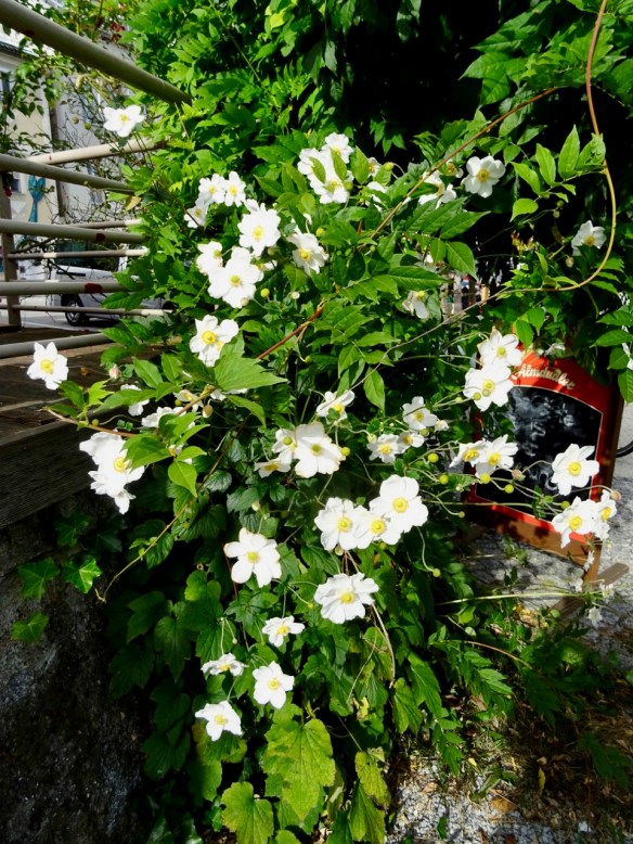 We see flower boxes still in bloom in the middle of November, lots of these grey and black birds (they are Hooded Crows), interesting art work in shop windows, and this sign which translates to One Psalm. No idea what that means.