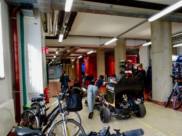 We take our bikes back. They are in a building which is an incubation centre for start-ups. Looks like these steps are a place to relax, or even snooze.