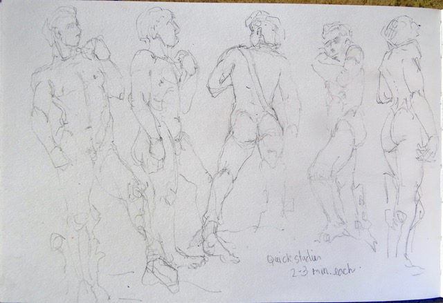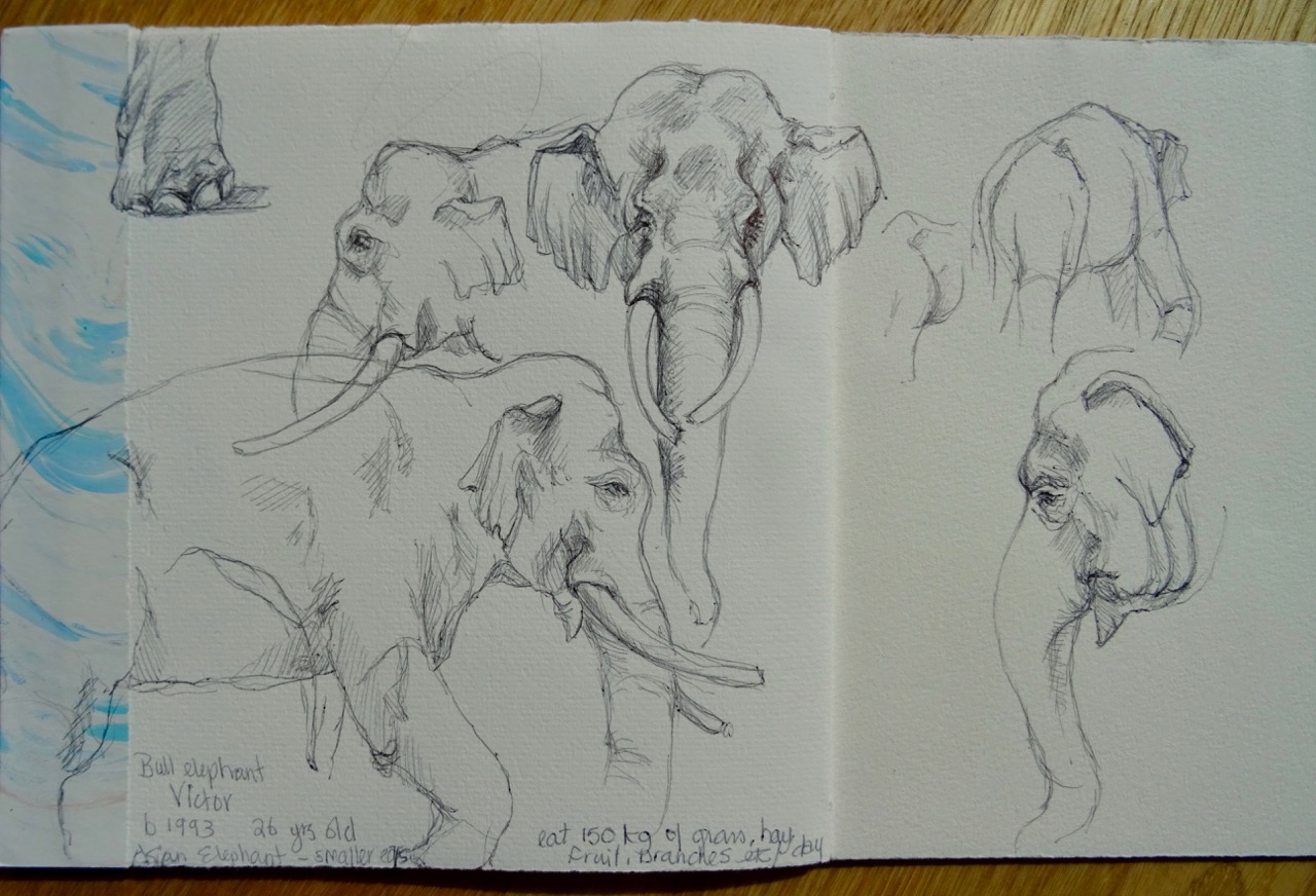 I took lots of reference photos of the elephants and spent a bit of time sketching them live.