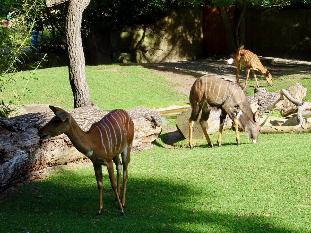 There were several sloth bears but they were all in separate enclosures. Perhaps they aren’t very sociable. This fellow was pacing back and forth continuously. We saw several animals exhibiting repetitive behaviours which we know is a sign of stress from being in captivity. That is hard to see but this zoo, like many others we have visited, is building bigger more natural habitats for their animals. We also see attempts to keep animals engaged with different ways of offering them their food and ‘toys’ for them in their enclosures. It is a trade off. Without the protection and breeding programs of zoos some of these animals would perhaps be extinct.