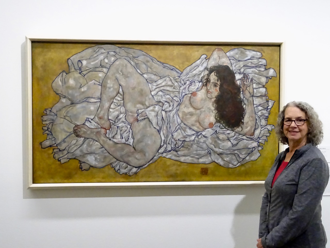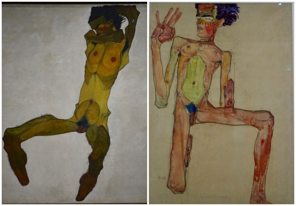 ‘Reclining Woman’ was bigger than I expected. Originally the woman’s genitals were exposed but Schiele added the white cloth covering in order to be able to show the work at an exhibition in Vienna in 1918.