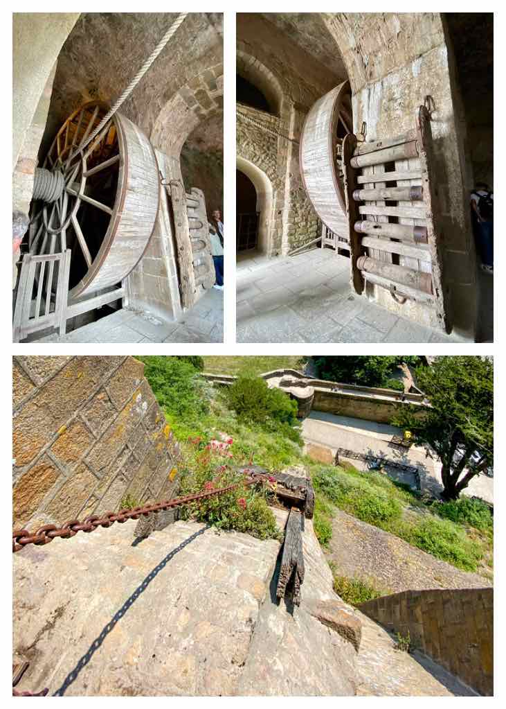 When the Abbey was used solely as a prison in the 1800’s, this huge wheel was was used to haul supplies up to the abbey. Prisoners walking inside the wheel were able to raise and lower a cart along a stone ladder inclined along the rock wall.
