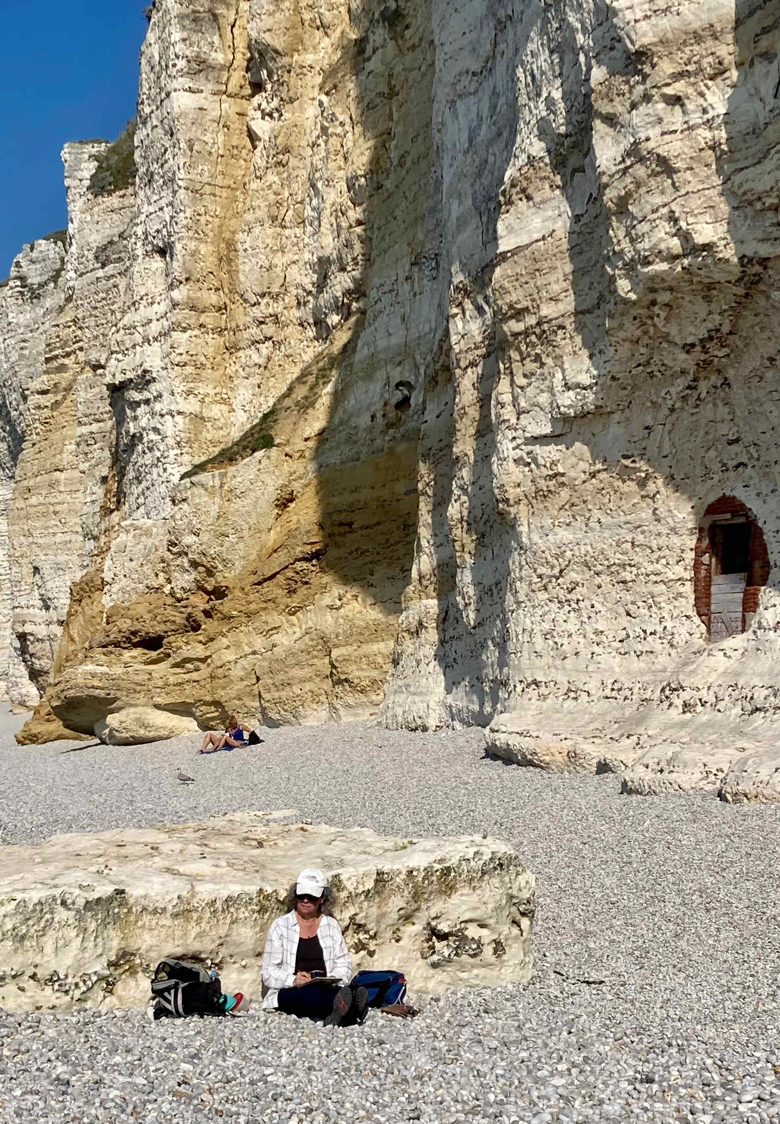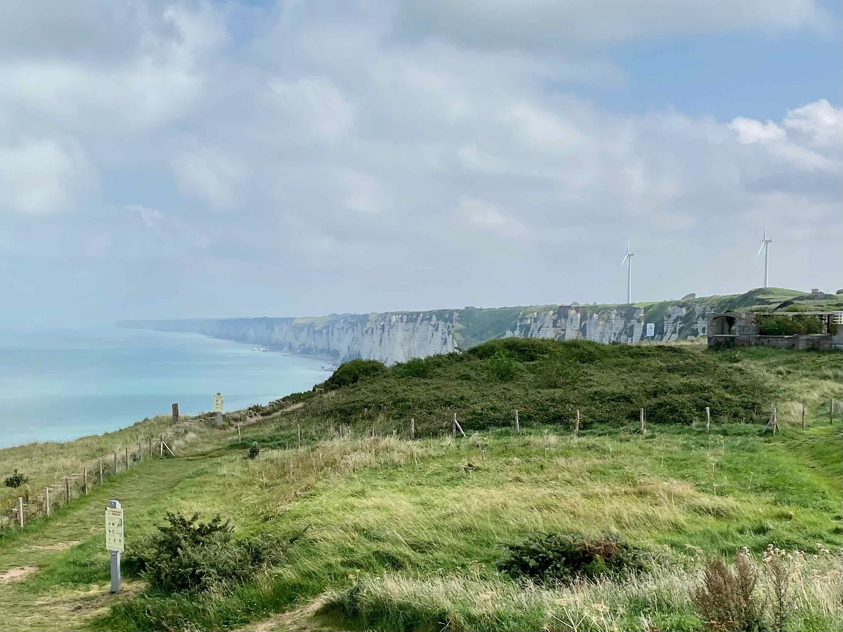 We discover a semaphore station built in the early 1900’s on the same site as an old lighthouse built in the early 1800’s. There are also more World War II bunkers here. Not surprising since they were built all along the coast of France. The three pillars were to hold radar equipment, but it was never installed, and there are several Tobruks, or machine gun nests.