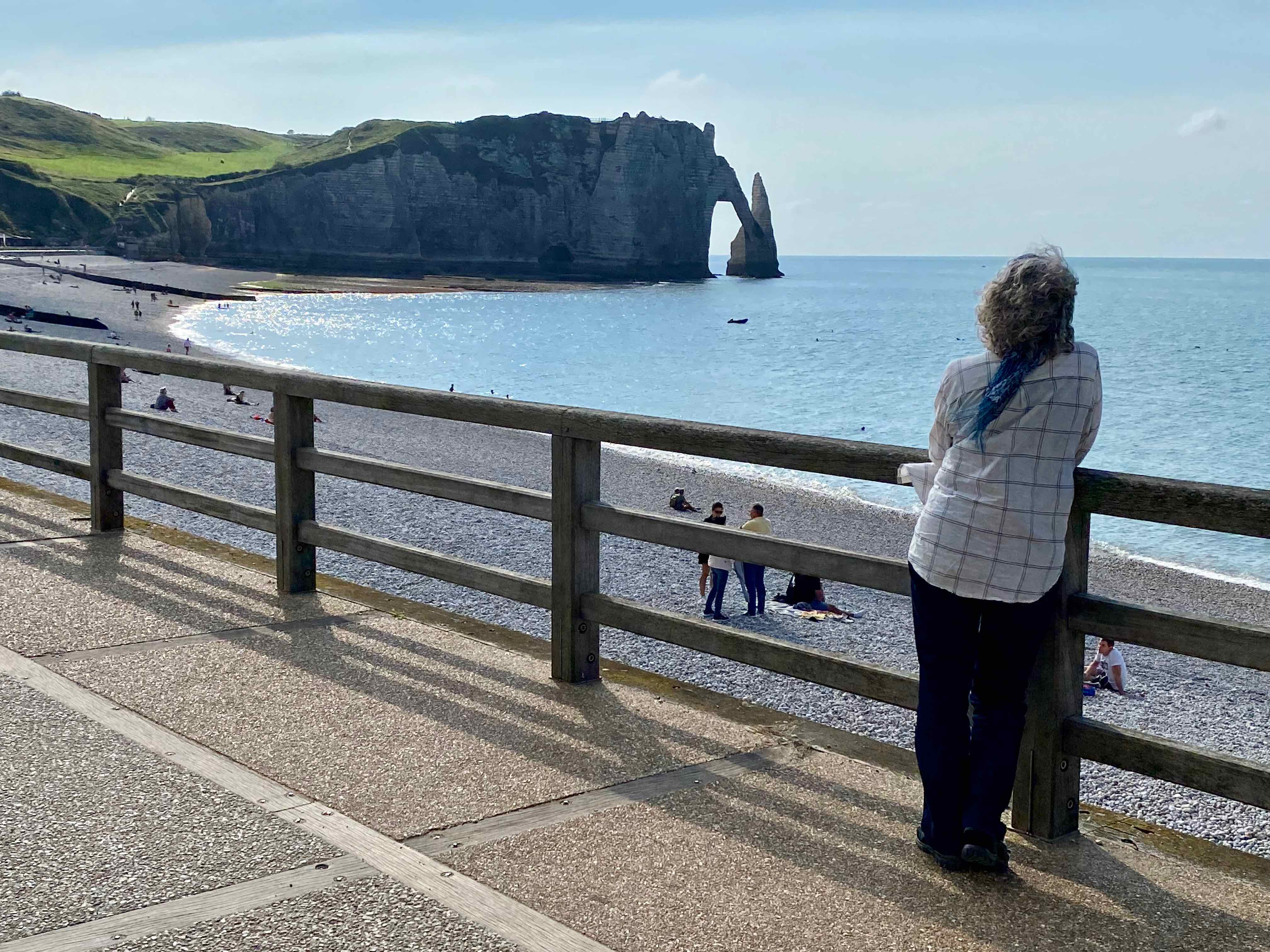 We hear shrieks and peals of laughter and realize that is is coming from the people out walking on the sands now that the tide is out. Some of them are thigh deep in the water! There are a lot of people out there, some of them way off in the distance. Thanks, but I am happy to pass walking in mud and cold water.