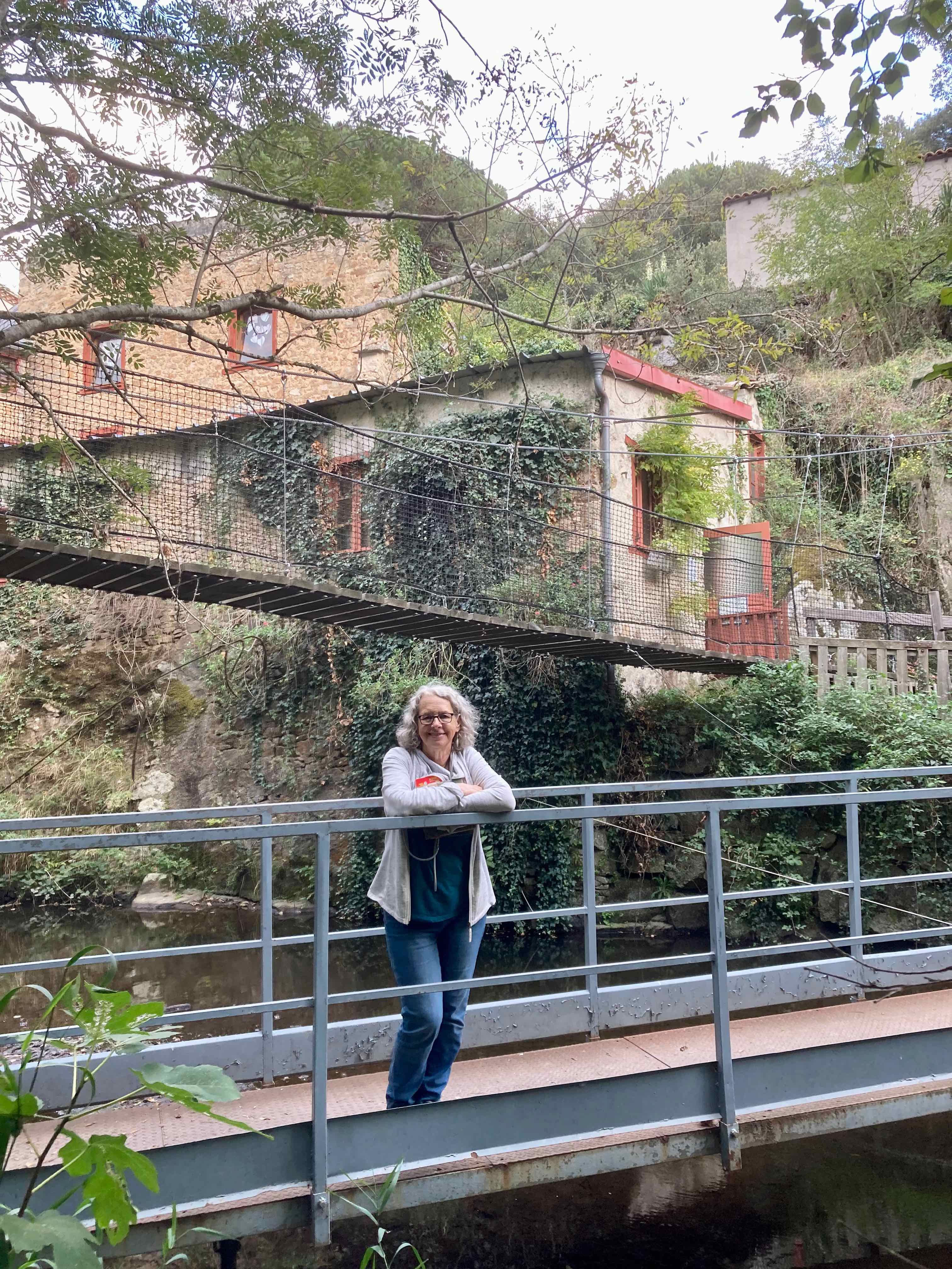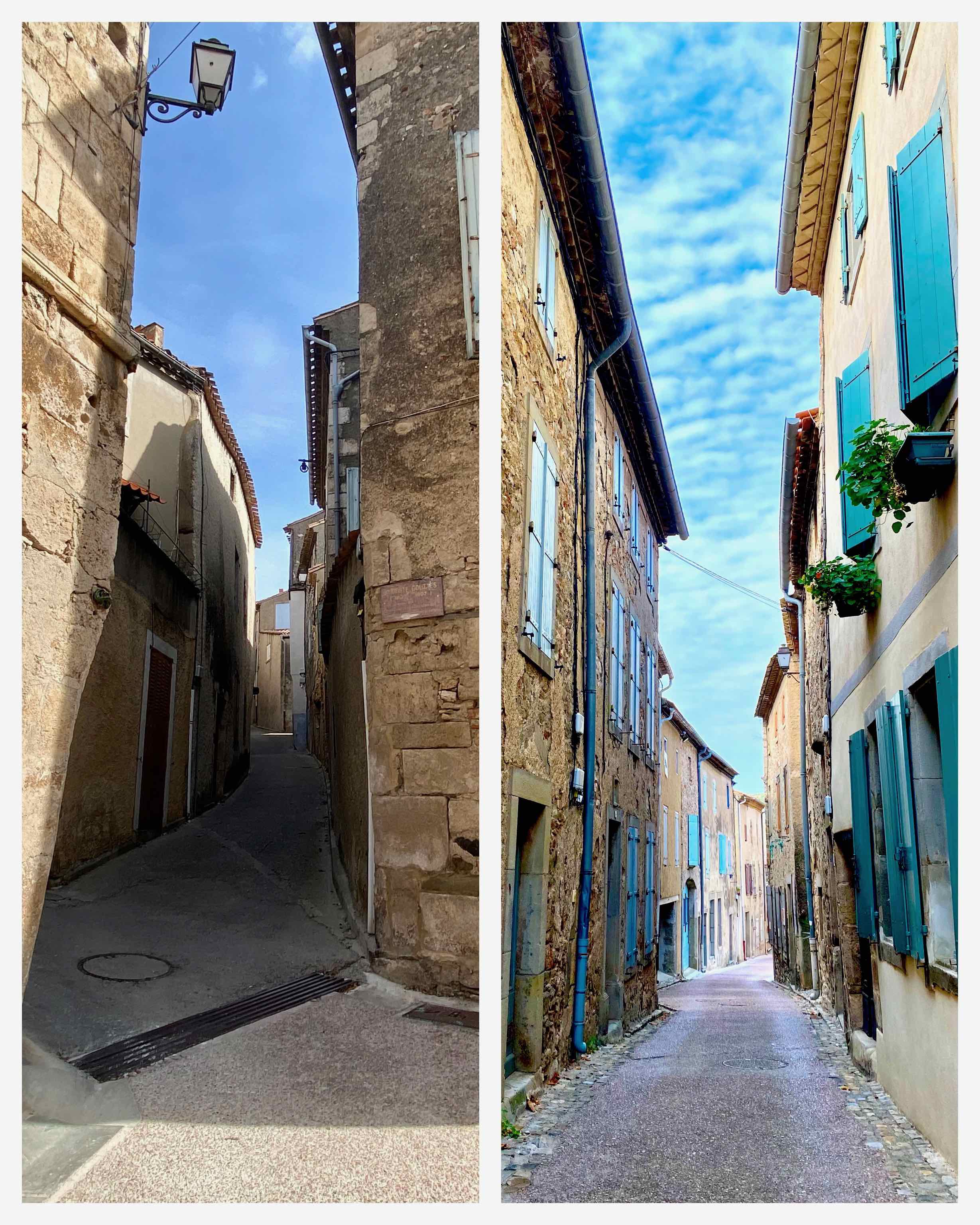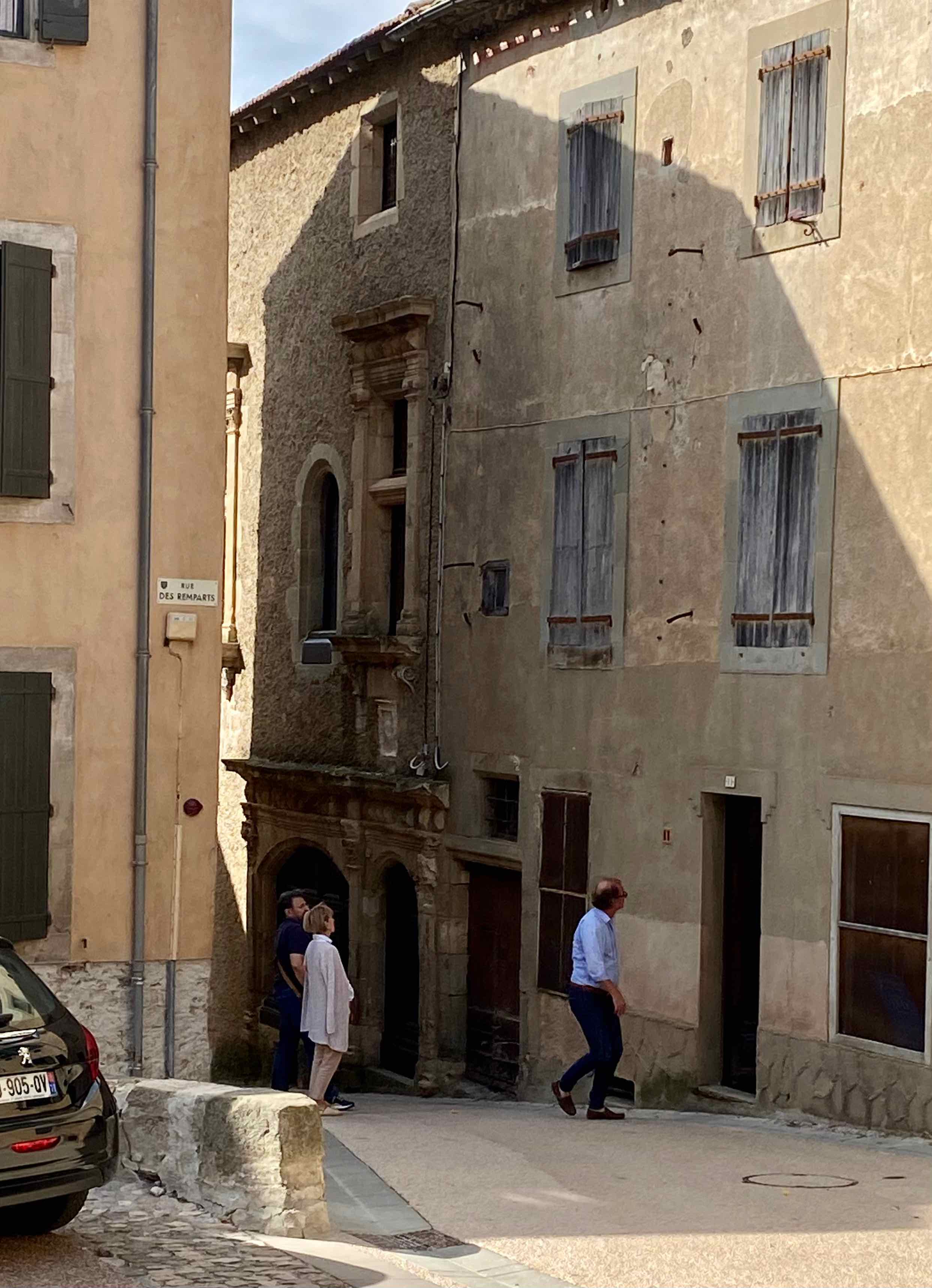 Bob has been doing a fantastic job as tour director.  He has found two little villages nearby that look interesting, Caunes-Minervois, which is known as the Red Marble Village, and Brousses, which has a working paper mill.  First stop is the Red Marble Village.  We find parking along a dry river bed and and a walkway with lots of red marble sculptures.