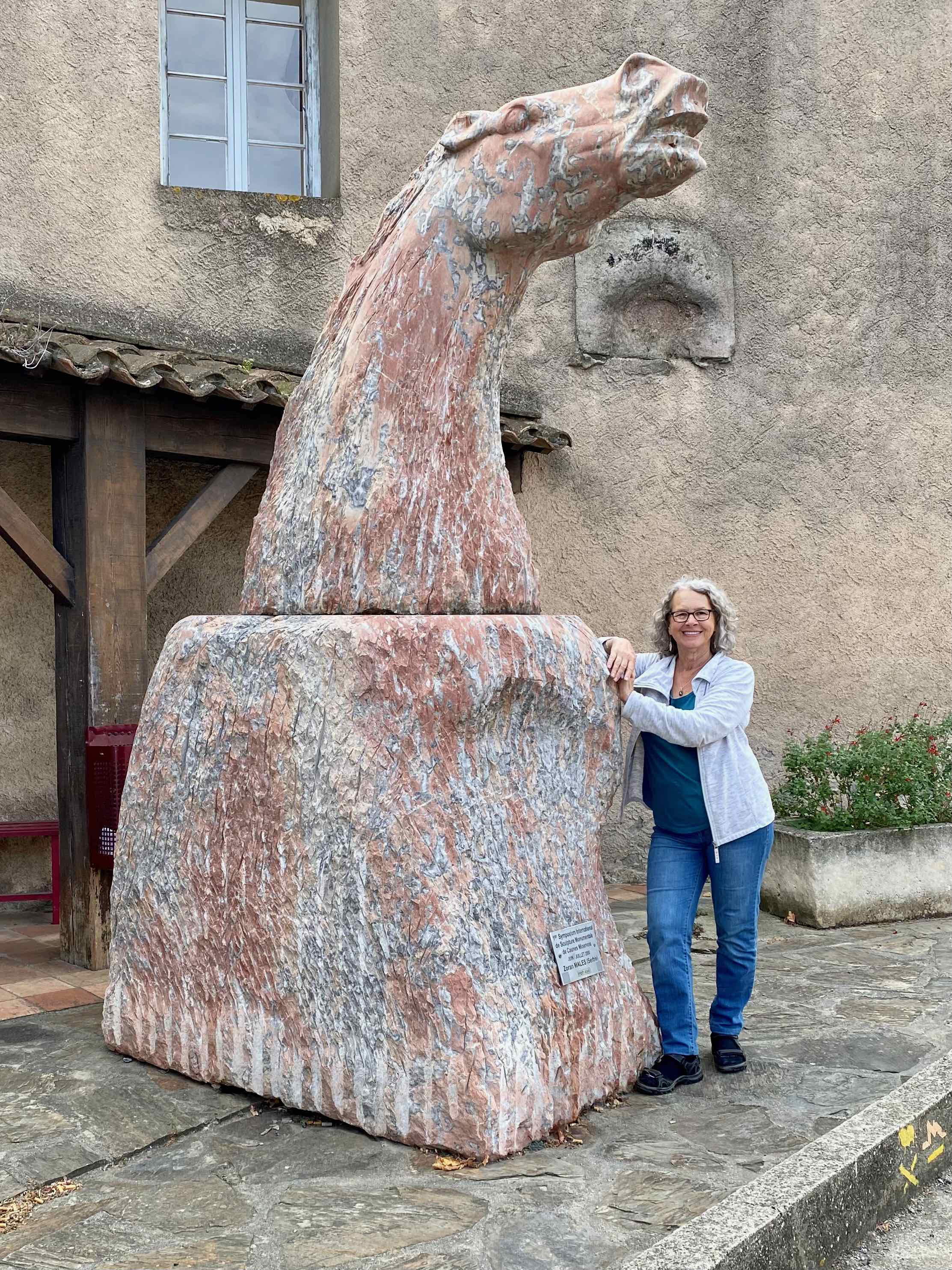 We had stopped at the tourist information and the walking map we picked up led us past this magnificent marble horse head.  Of course I needed my photo with this one.