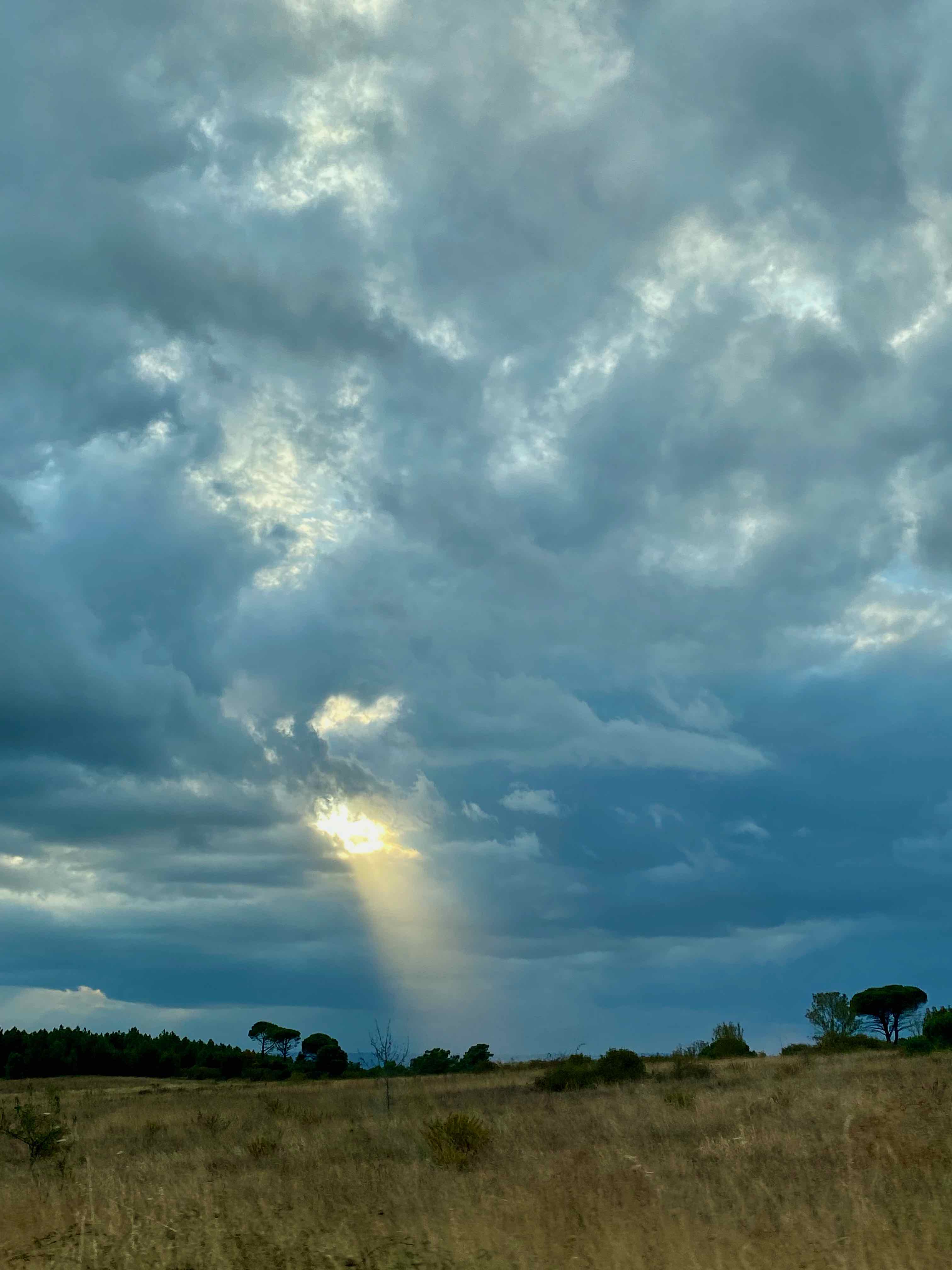 There are some interesting clouds with shafts of sunlight on the drive home.
