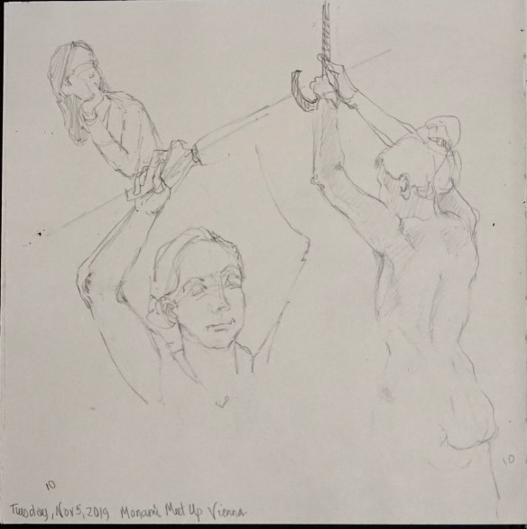 and we finished the evening with a twenty-five minute pose. The people at this session were very friendly and I had met some of them at the other two sessions this week. I will miss Vienna, they have so many life drawing opportunities. There is a session almost every day of the week, and lots of them have interesting themes.