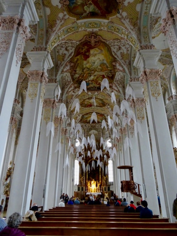 St. Ludwig is home to the second largest altar fresco in the world. The large fresco of the Last Judgement (1836-1840), by the German painter Peter von Cornelius, measures almost 19 metres by 11.5 metres! There is a service taking place so we are not able to get a close up look at this enormous fresco.