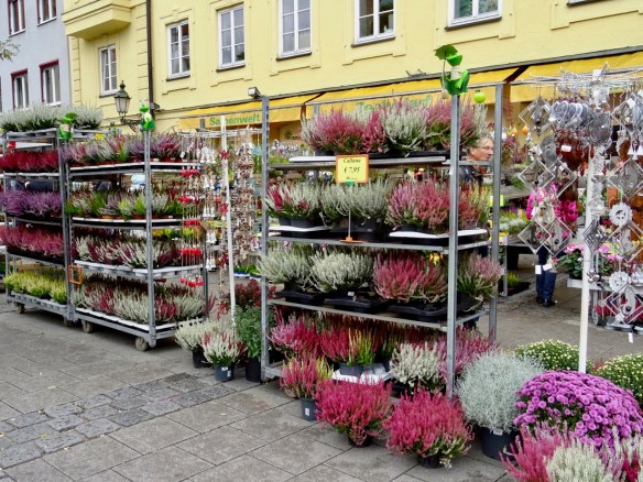 We see lots of people carrying home these little pots of colourful heather from the street market.