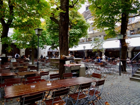 We pop into one of Munich’s beer gardens but it is cool today so there aren’t many people. I am sure it was a different story just a few weeks ago during Oktoberfest. We were originally going to be in Munich during Oktoberfest but quickly changed our plans when we realized that. More than six million people descend on Munich to drink beer and party…not anyplace we want to be!