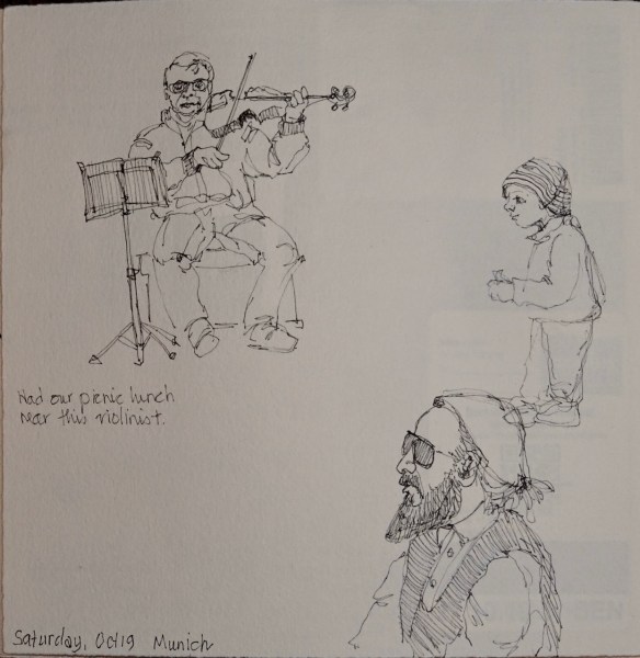 Bob is doing fantastic job finding things for us to see and do and organizing our days. I just tag along, enjoying what he has planned. It is supposed to be warm today so we pack a picnic lunch and make our way slowly towards English Garden.
