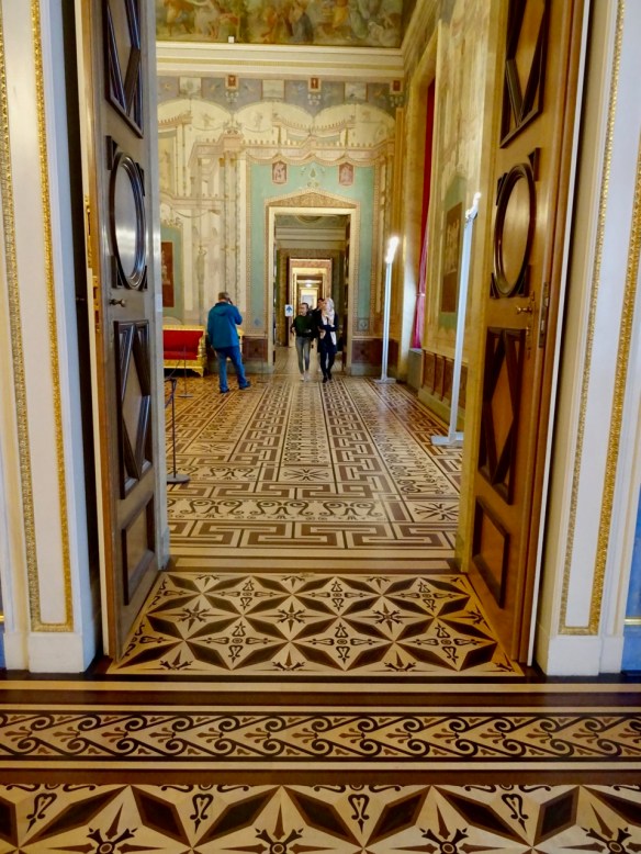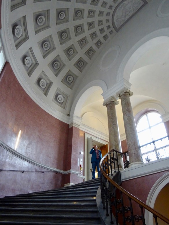 but other than the grand staircase, the inside is a bit of a disappointment. Lots of study cubicles and hardly any books! As in the library we visited in Berlin, no coats, laptop cases, backpacks or purses are allowed into the library and anything you do take in must be in a clear plastic bag. Seems strange to me.