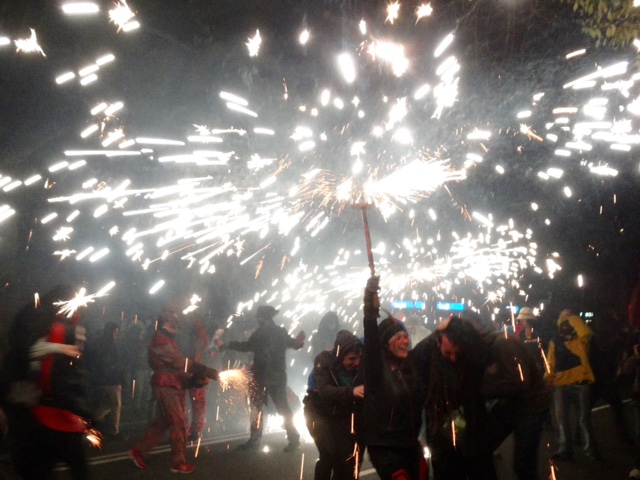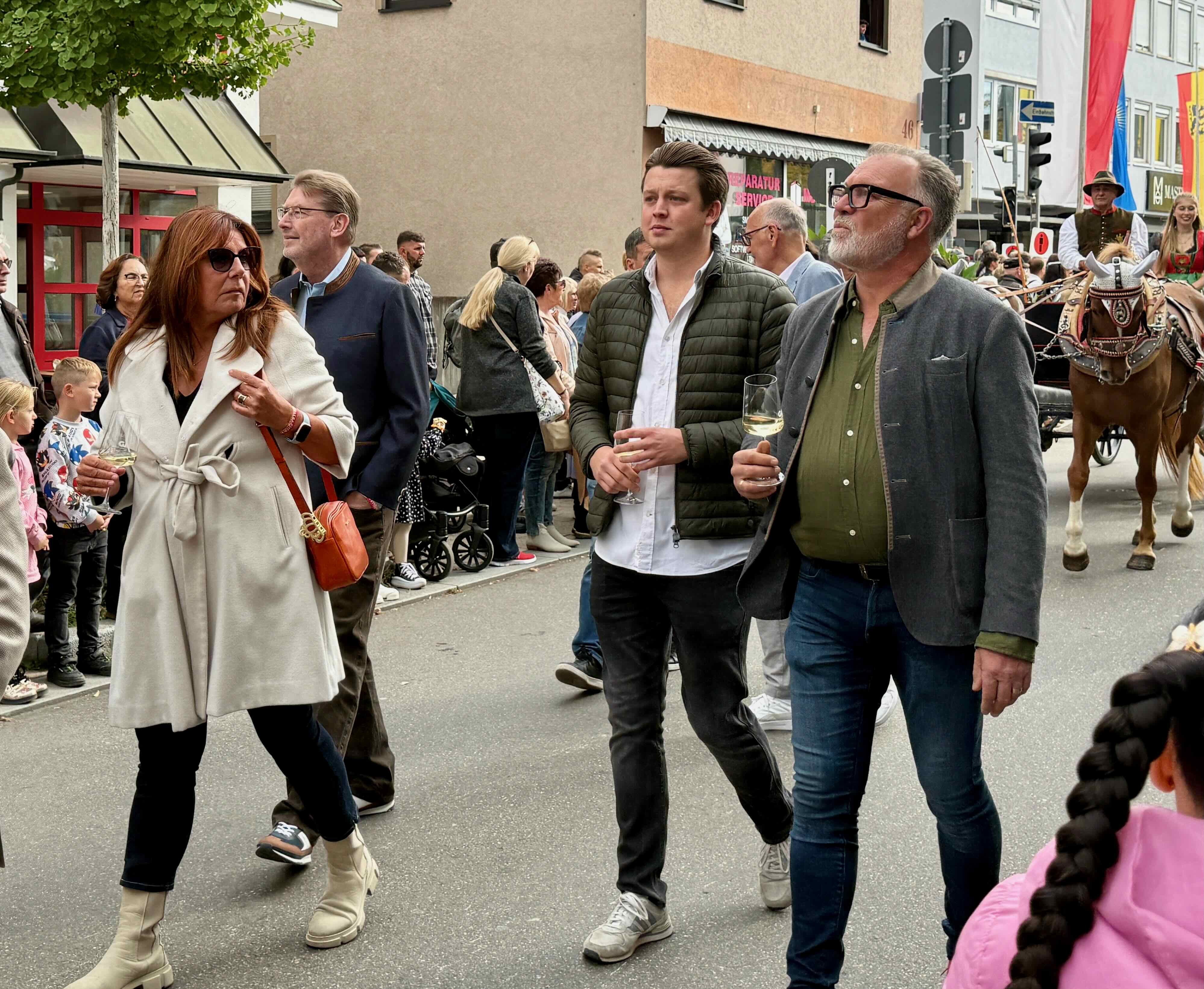 This is the first parade we have seen where the participants carry glasses of wine and many of the people watching the parade also have glasses and bottles of wine.