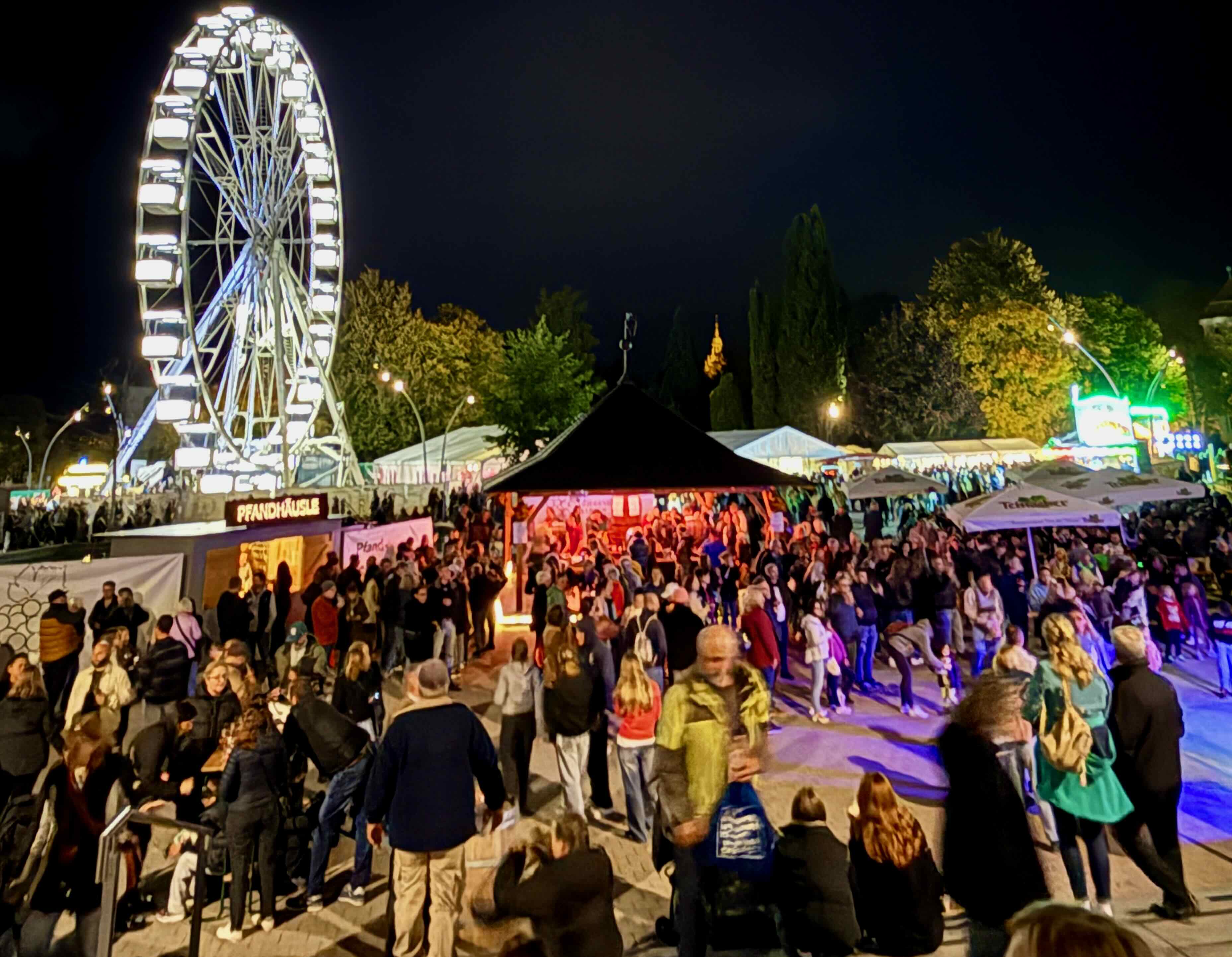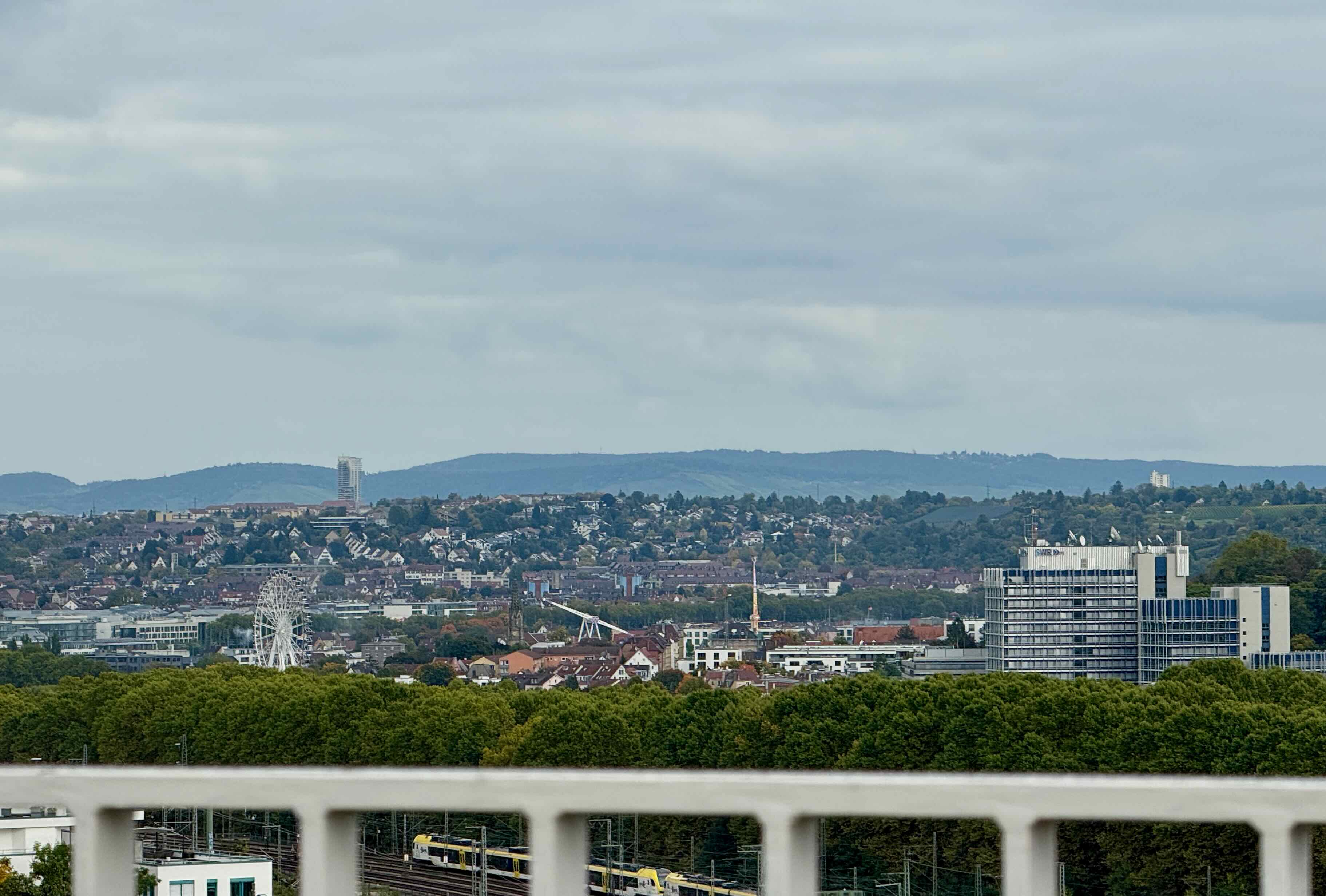 We can see one of the Cannstatter Volkfest ferris wheels (from our visit yesterday) and some of the other rides from up here!