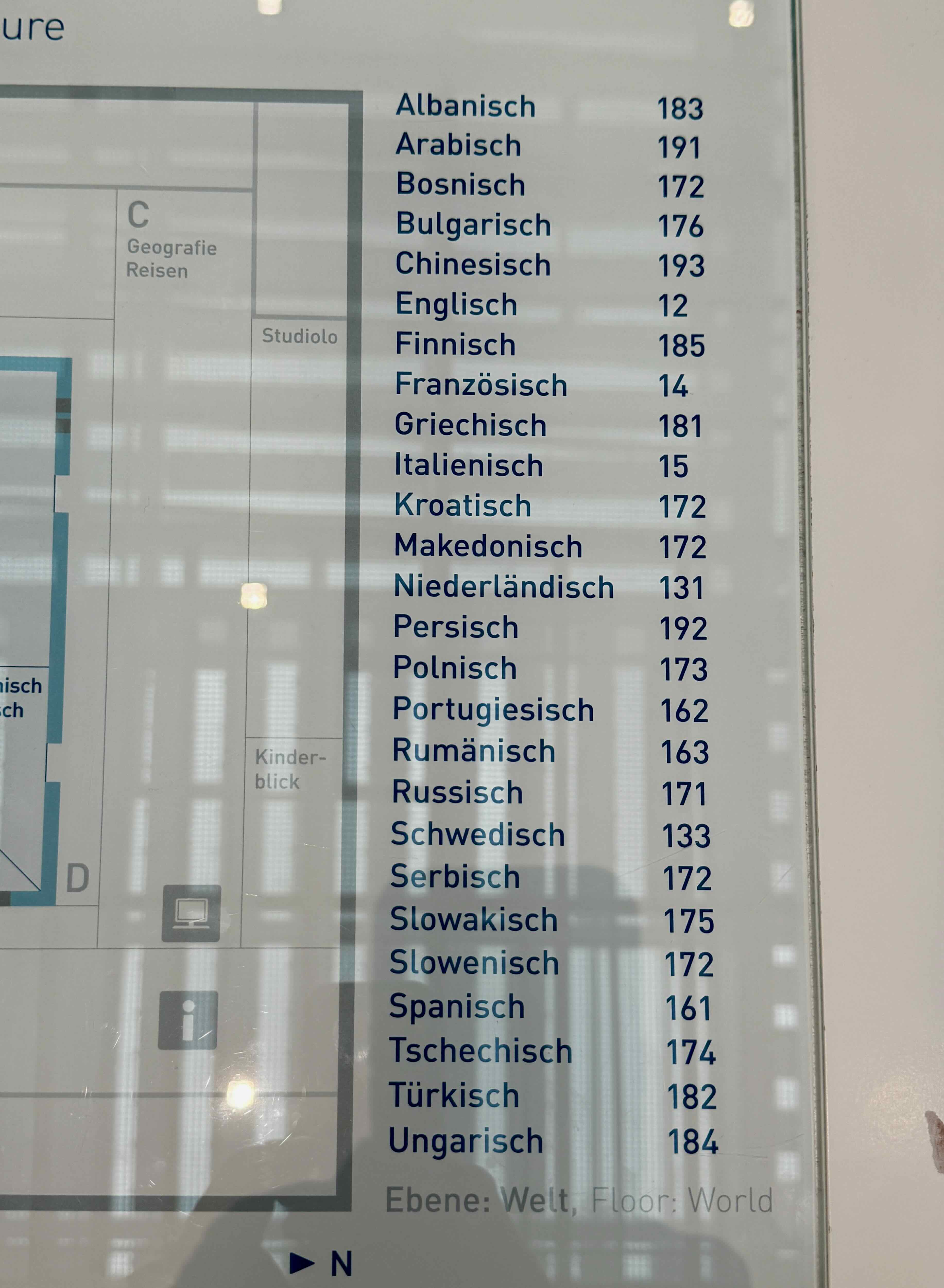 There are corridors and more rooms of books behind the book shelves you can see in the photo above. They have some books in all these languages!