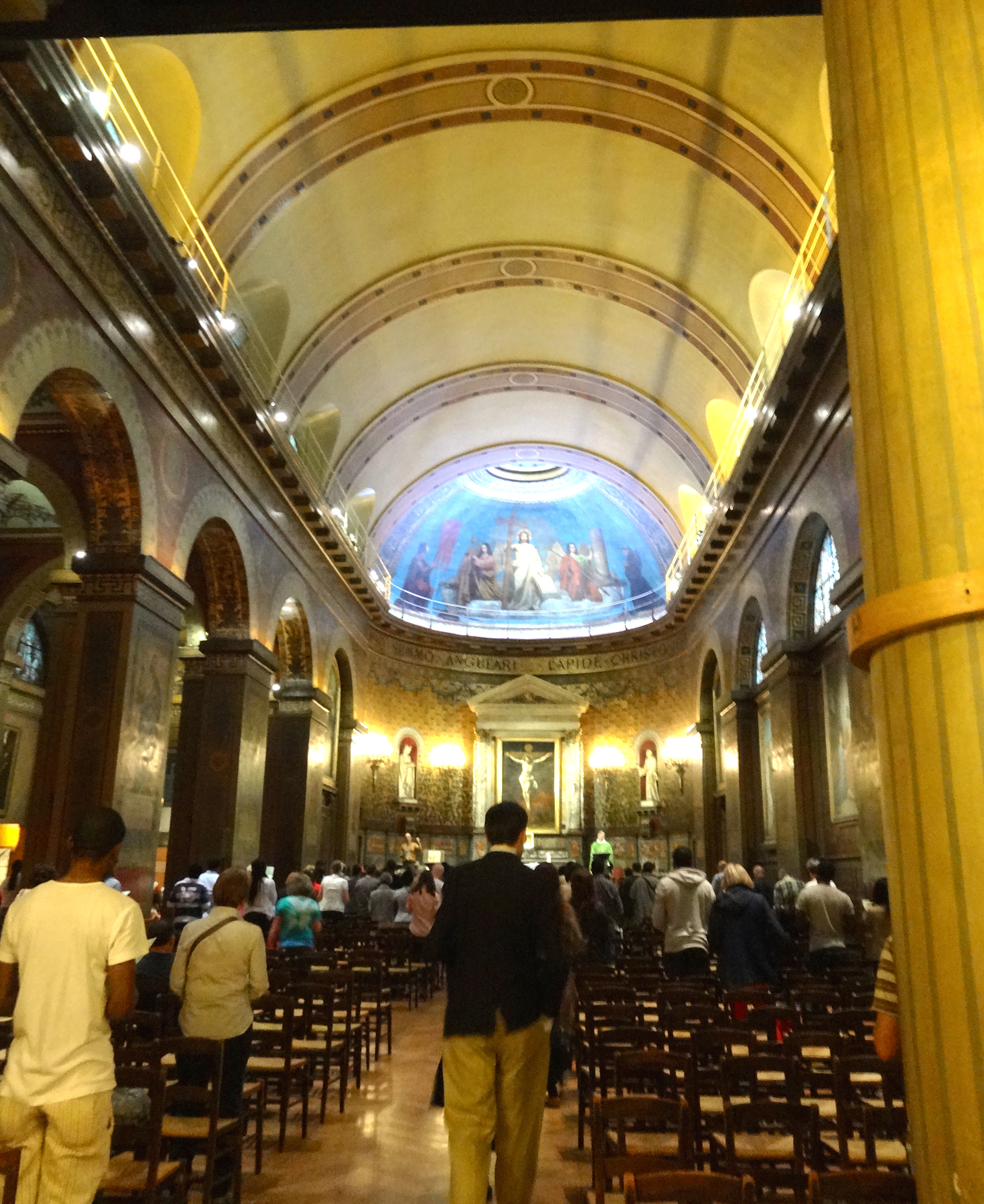 Wow! This is St. Kinga’s Chapel. It is entirely constructed from the salt in the mine. Most of the stairs on our route are made of wood, but these two staircases we walk down are made of salt.