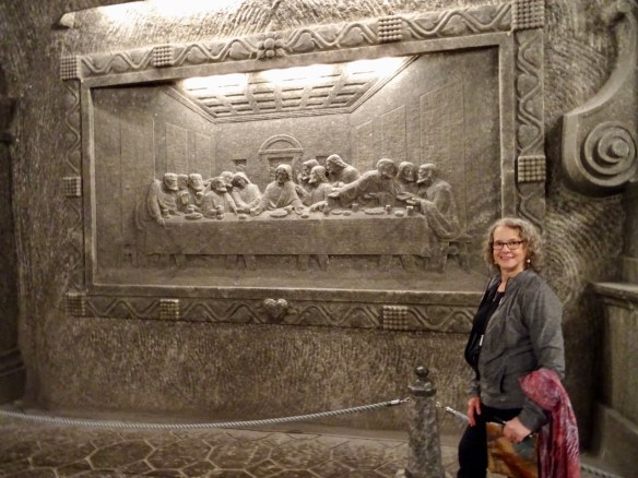 The miners built over 40 chapels In the mine. It was very dangerous work so they would pray before their shift that they would be safe and then they would offer thanks before they went home. This representation of da Vinci’s last Supper is carved in salt, as are…