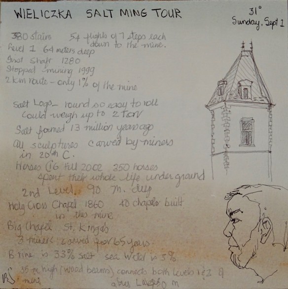 I was hoping to sketch underground but there just wasn’t the time, so I made notes instead, but I did sketch one of the tourists before we went underground.