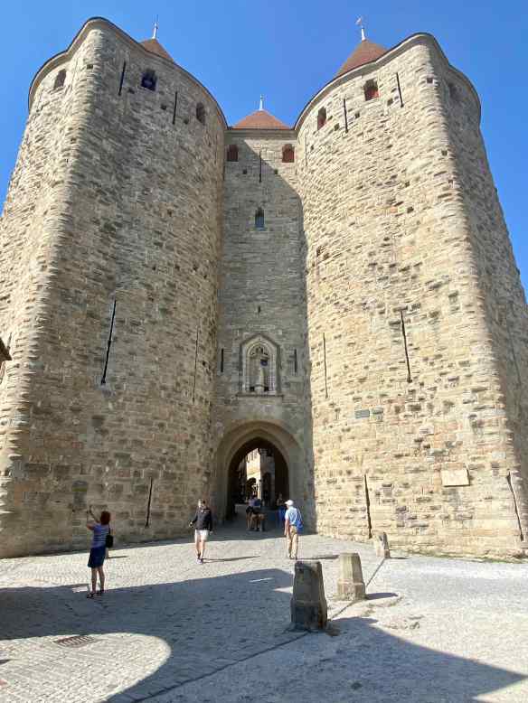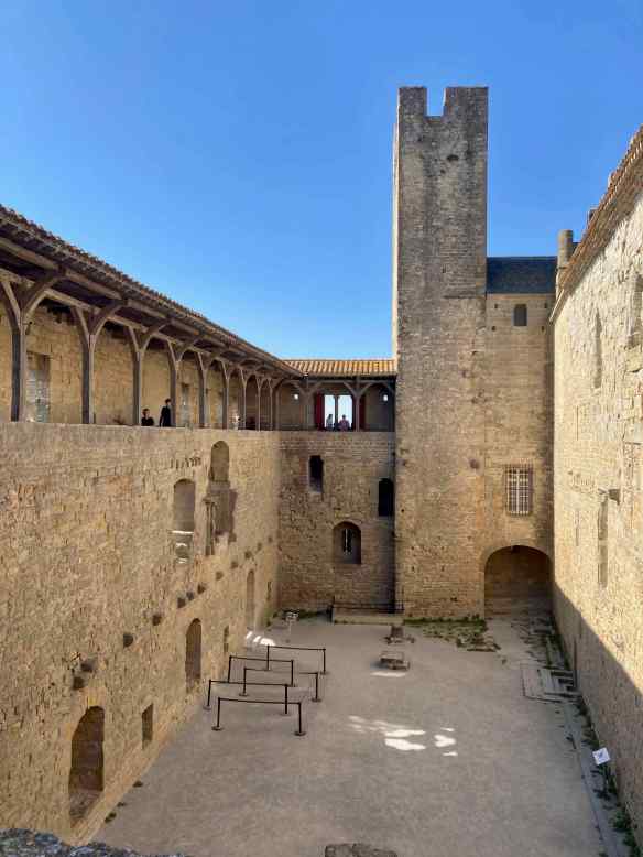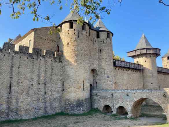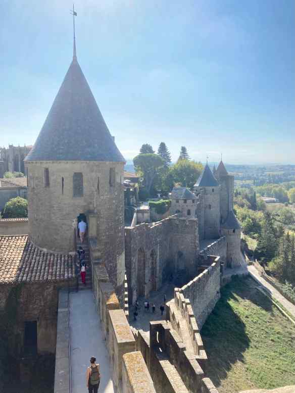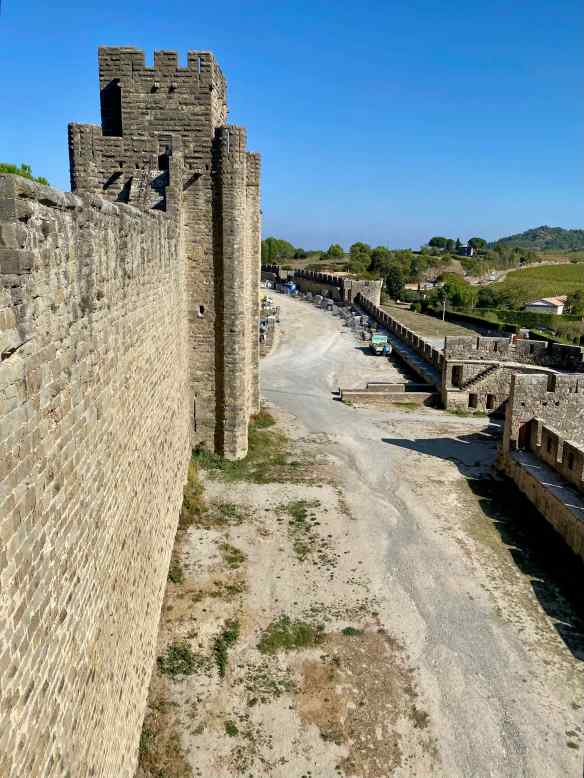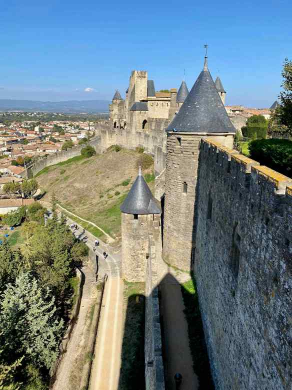 Carcassonne is now considered to be the largest and best conserved medieval fortress in Europe. It is impressive with its set of double walls and ramparts. Both sets of walls and the area between them can be seen in this photo.