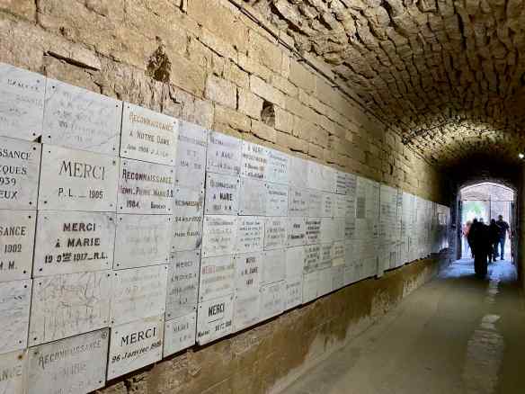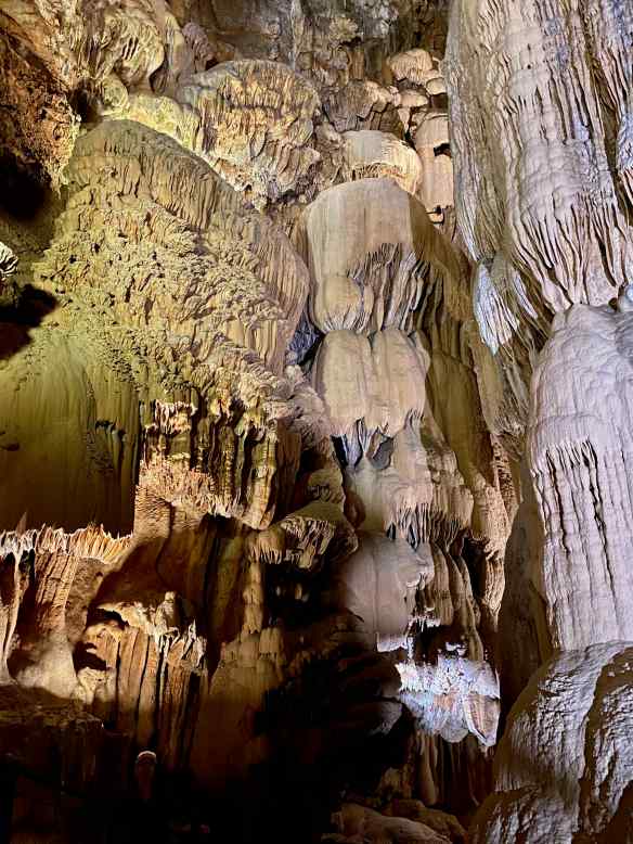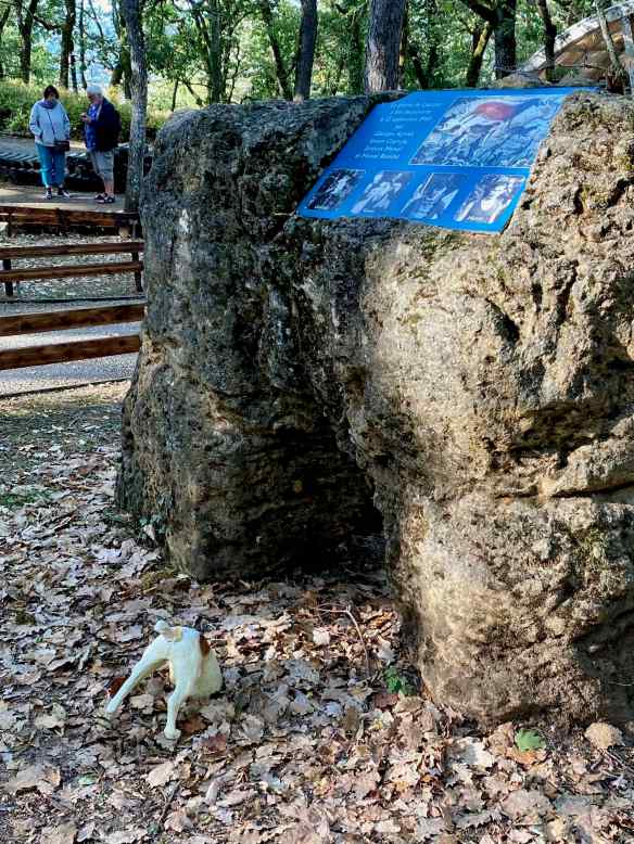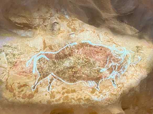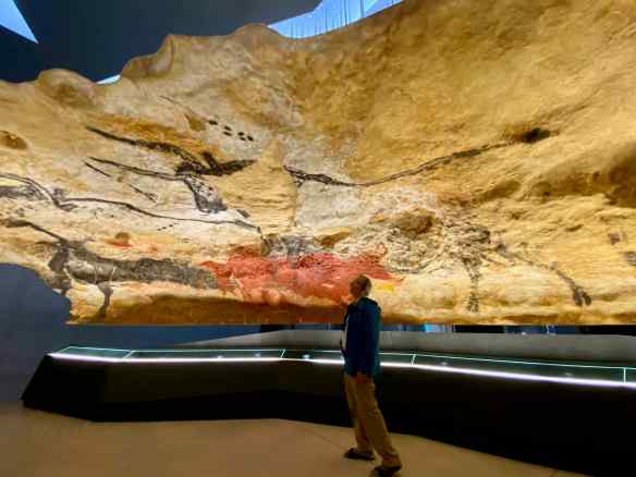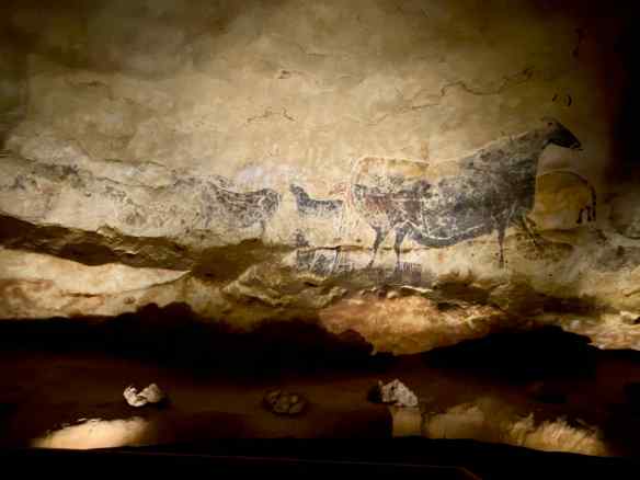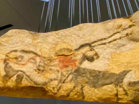 I was surprised to see that almost everyone in the group turned towards our guide when he started talking and they stopped looking at the drawings! Really? Couldn’t they have listened but keep looking a the artwork above our heads? It seemed such a waste to be standing here and ignoring these ancient drawings. One very interesting drawing of a mammoth showed its anal flap. Sorry, no photo of that one. Yes, this is a flap that covers the mammoth’s anus to keep it warm. Only someone who had very close contact with a mammoth would know about this detail. This fact was used to help authenticate these drawings, as they were thought to be modern fakes when they were first discovered..