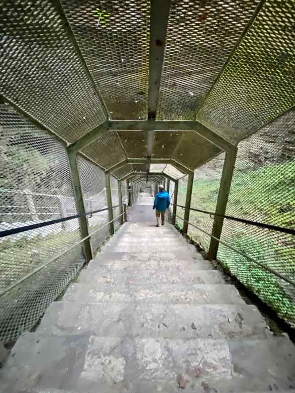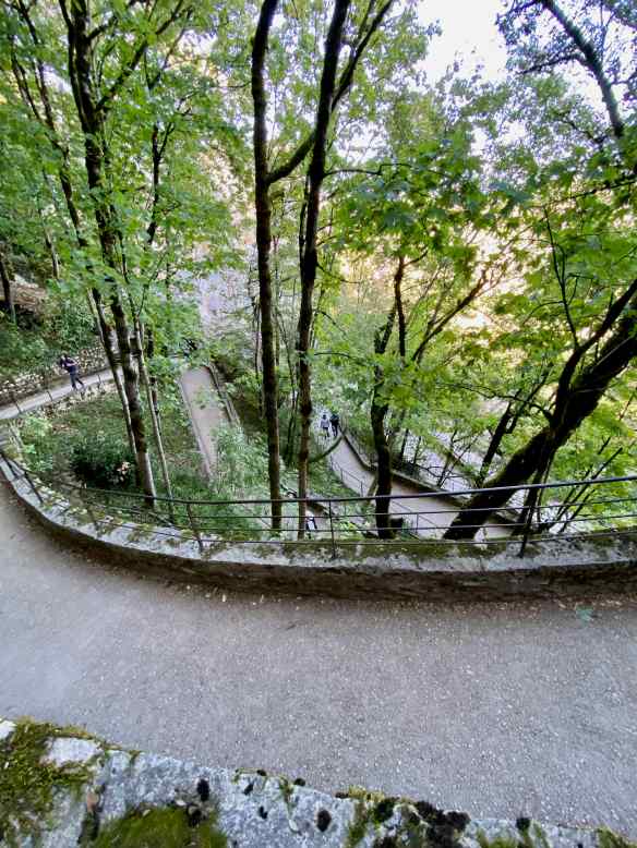 When the Abbey was used solely as a prison in the 1800’s, this huge wheel was was used to haul supplies up to the abbey. Prisoners walking inside the wheel were able to raise and lower a cart along a stone ladder inclined along the rock wall.