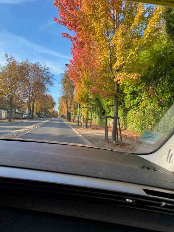 More tree lined roads on the way home…the leaves look golden in the setting sun.